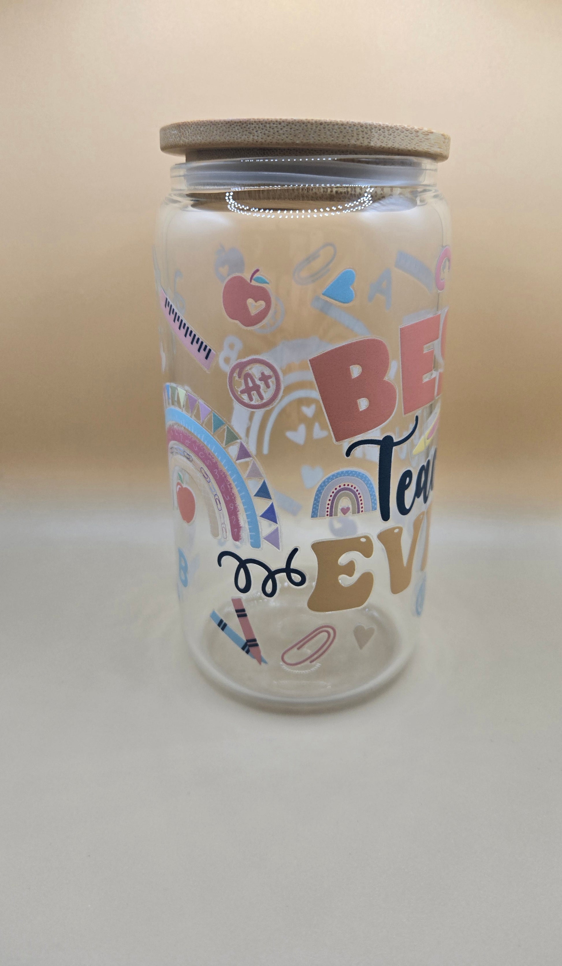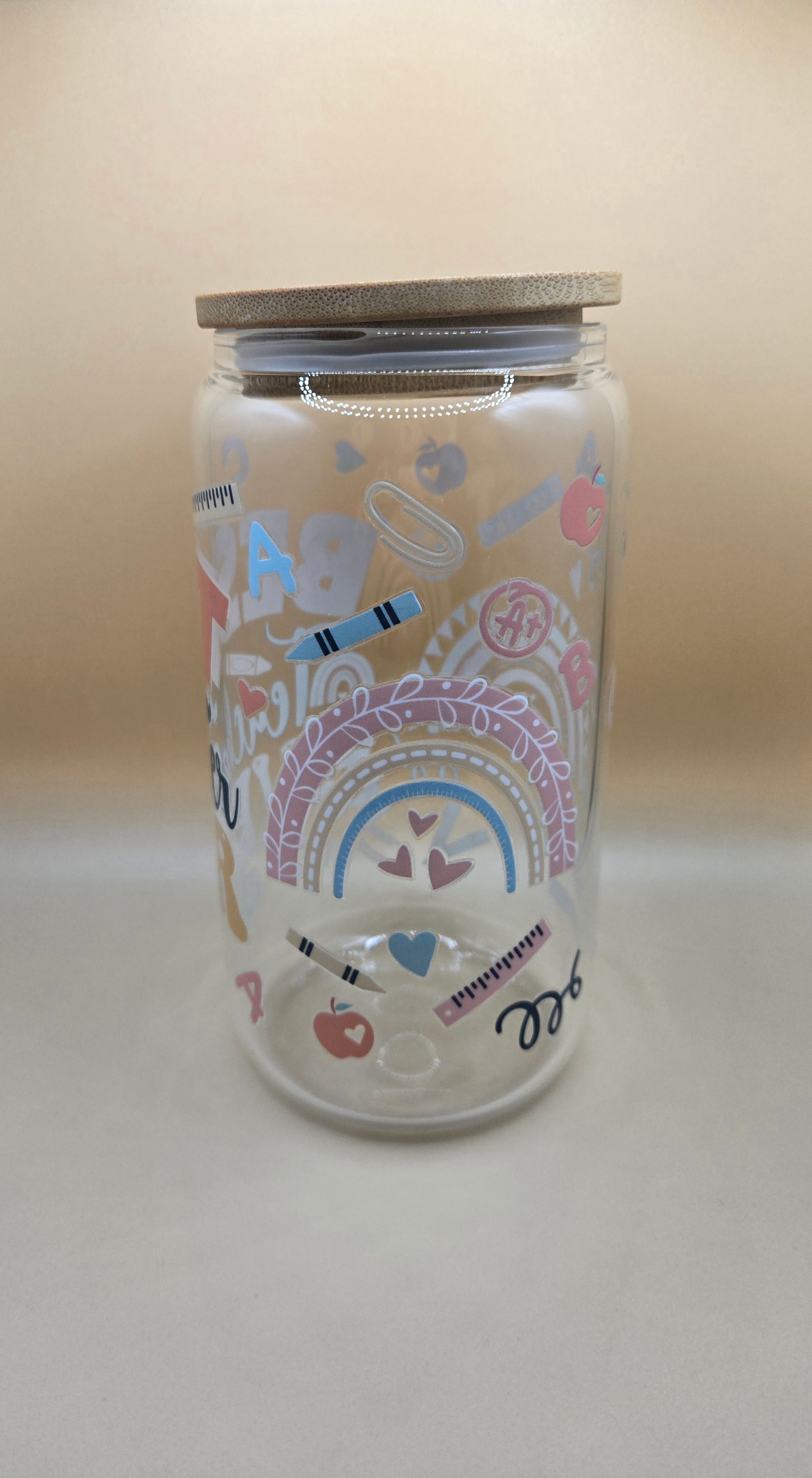 16 oz Glass Cup with Bamboo Lid and Plastic Straw