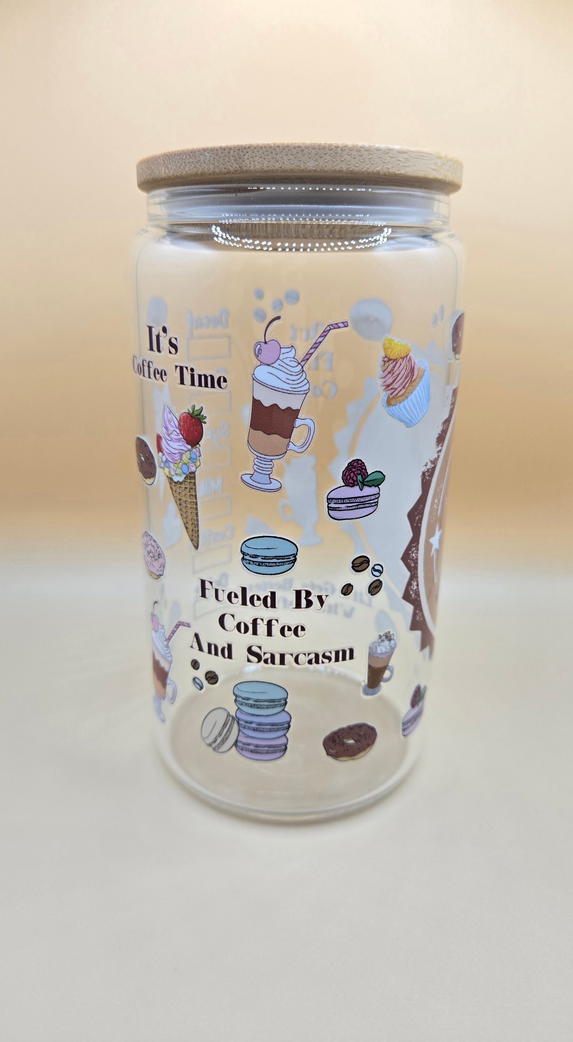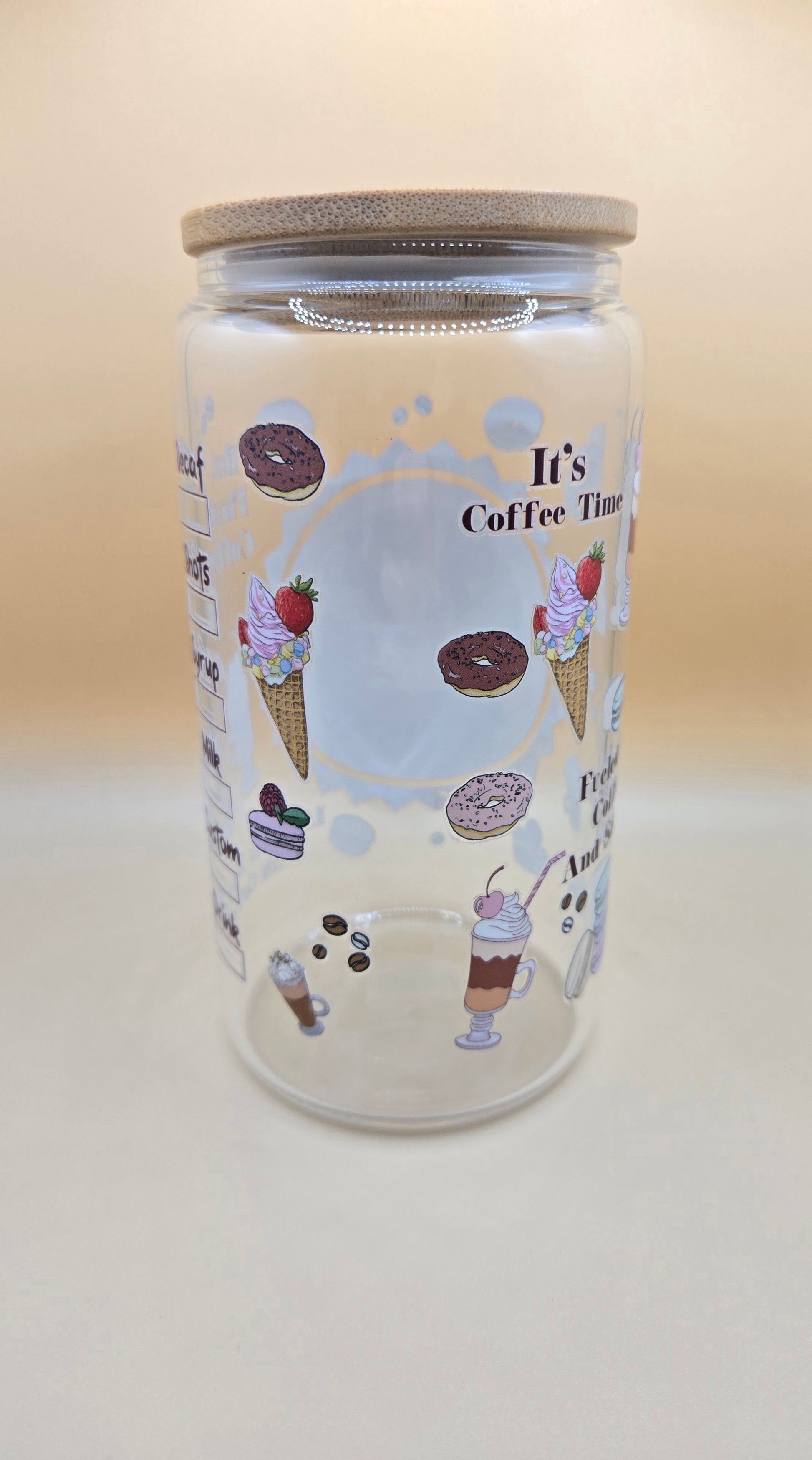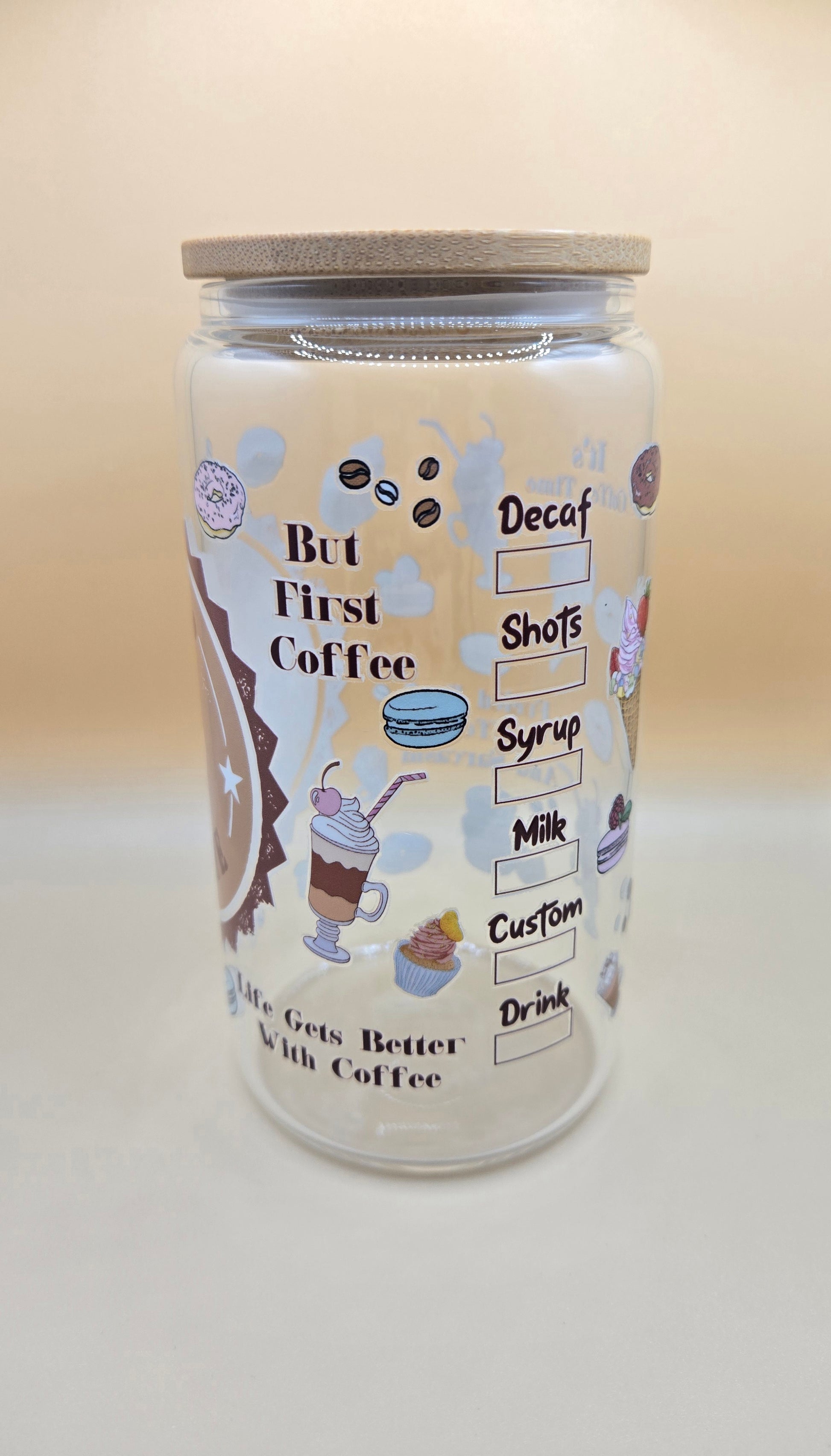 16 oz Glass Cup with Bamboo Lid and Plastic Straw