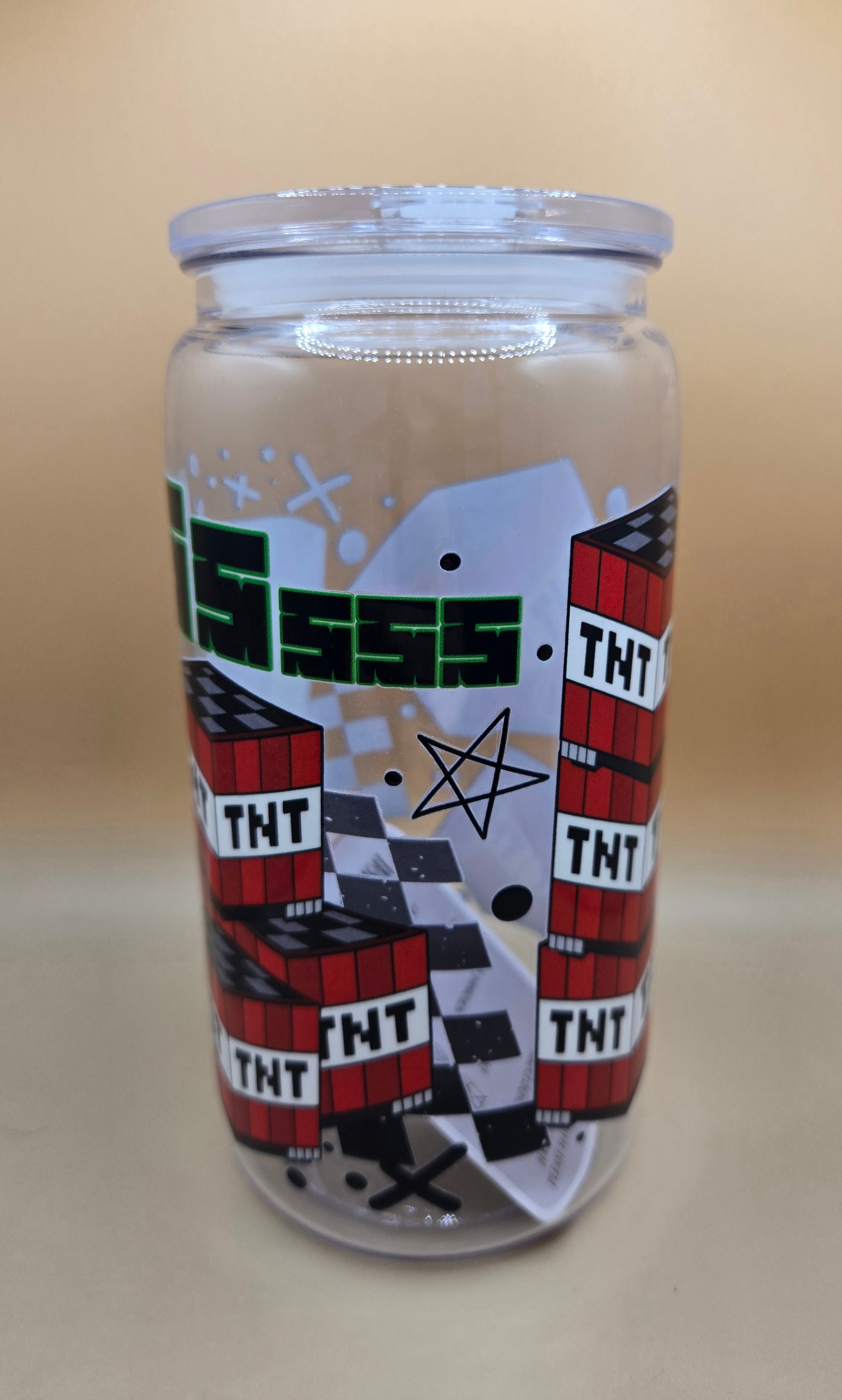 16 oz plastic Creeper Mincraft. Comes with plastic Straw.