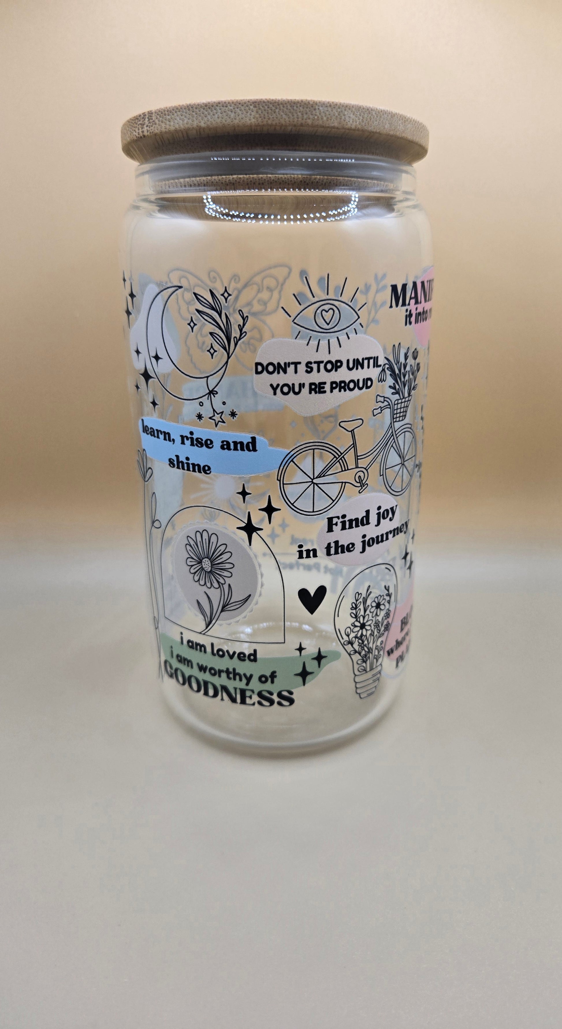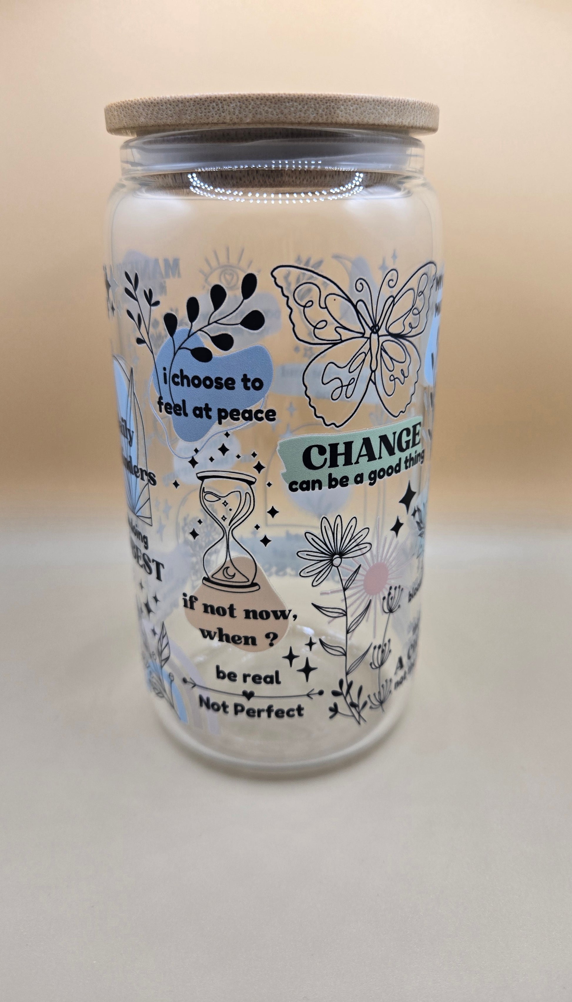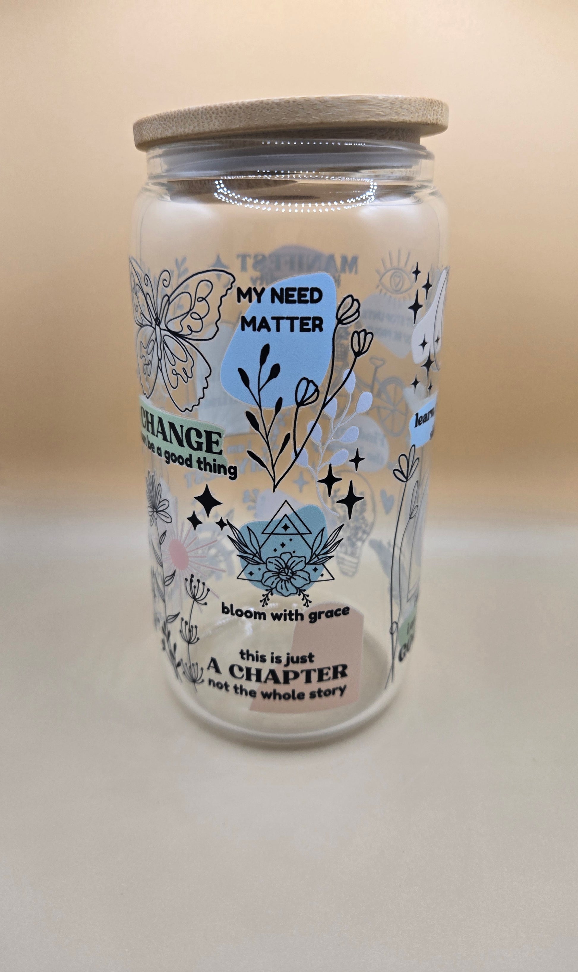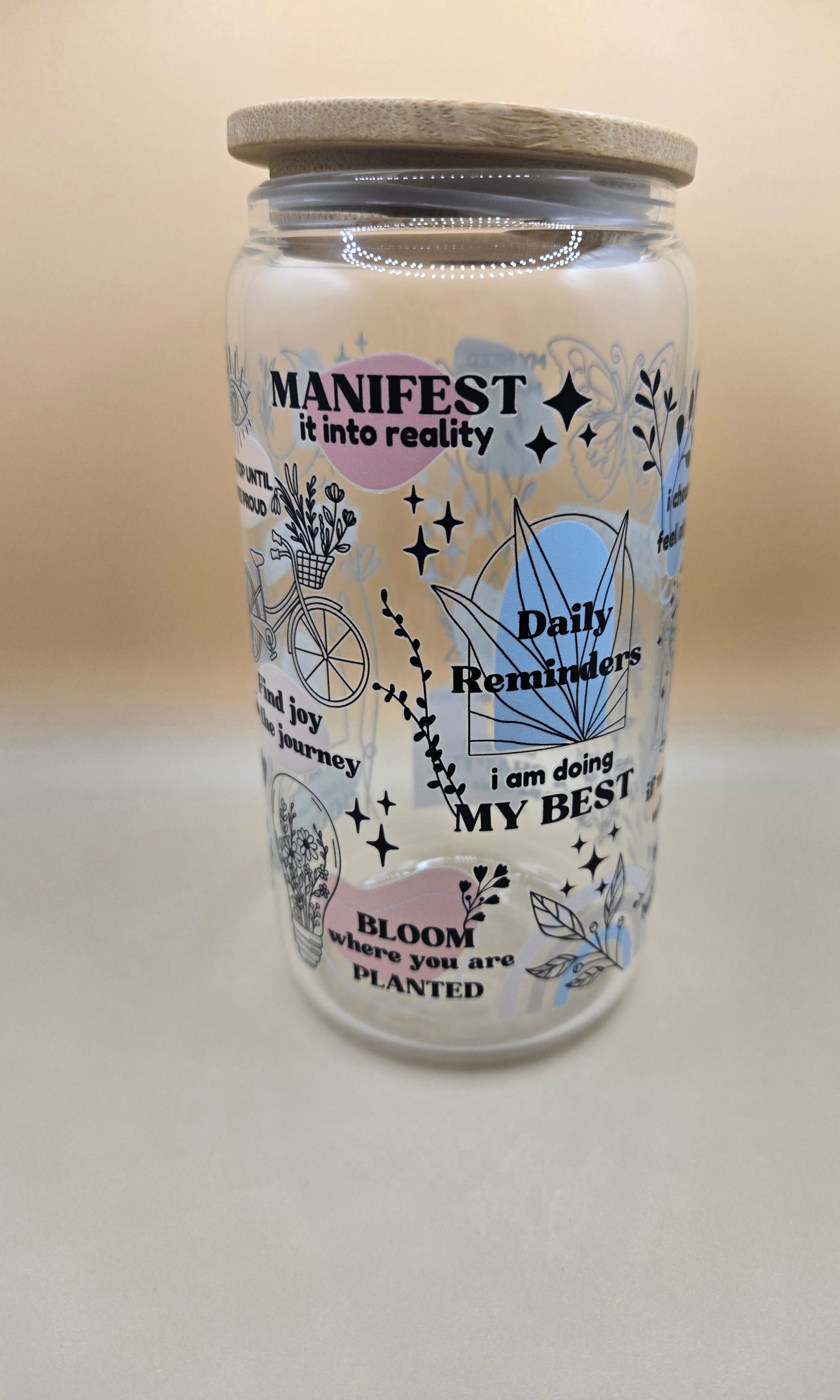 16 oz Glass Cup with Bamboo Lid and Plastic Straw