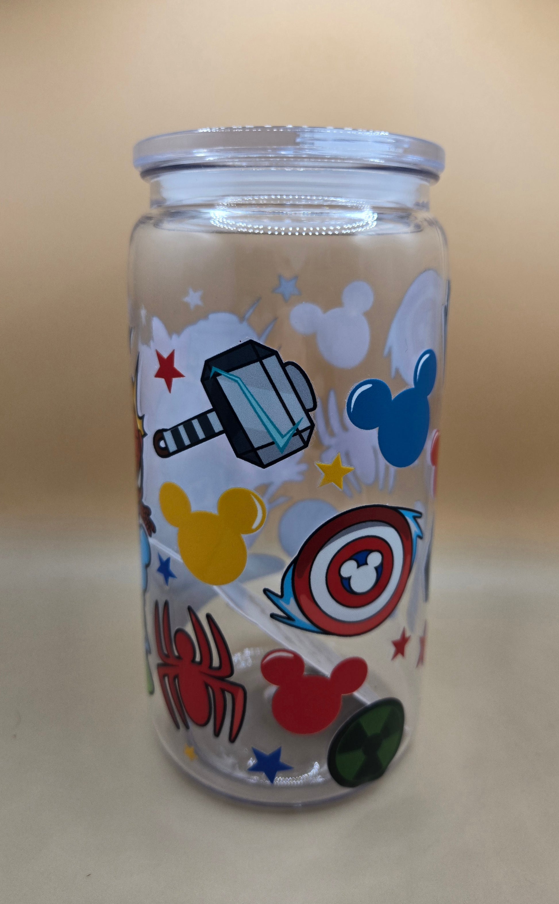 16 oz plastic Disney Avengers. Comes with plastic Straw.