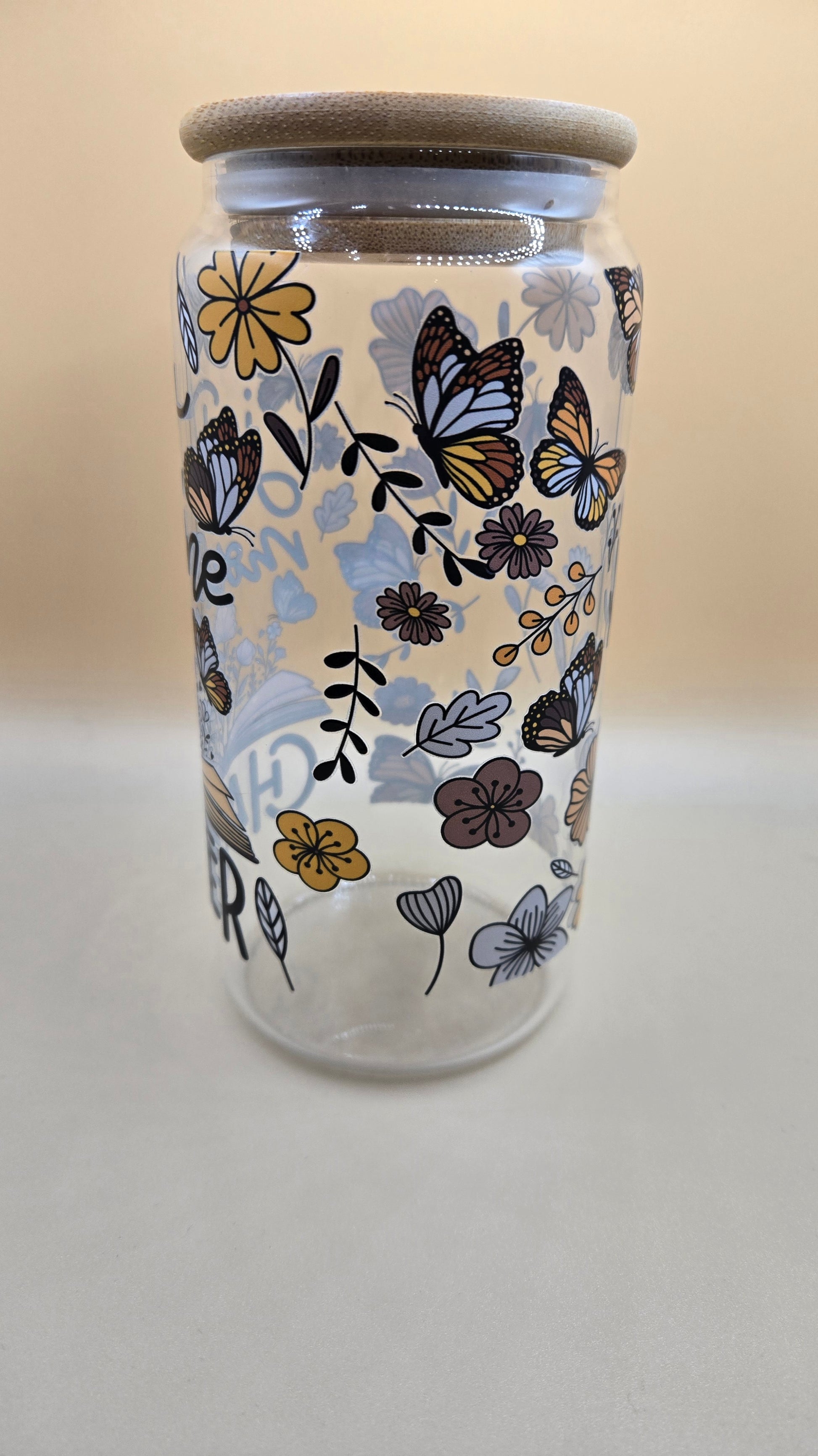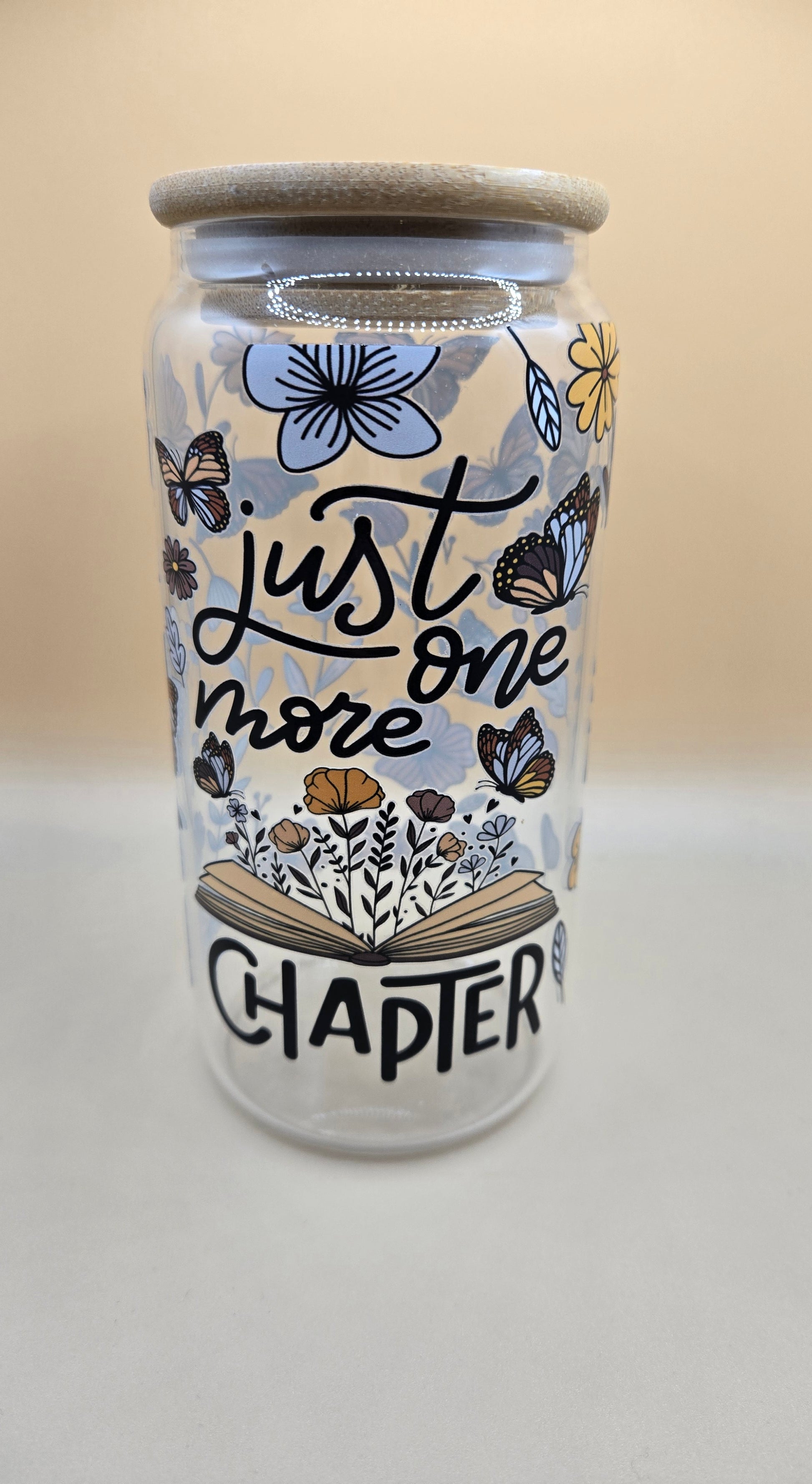 16 oz Glass Cup with Bamboo Lid and Plastic Straw