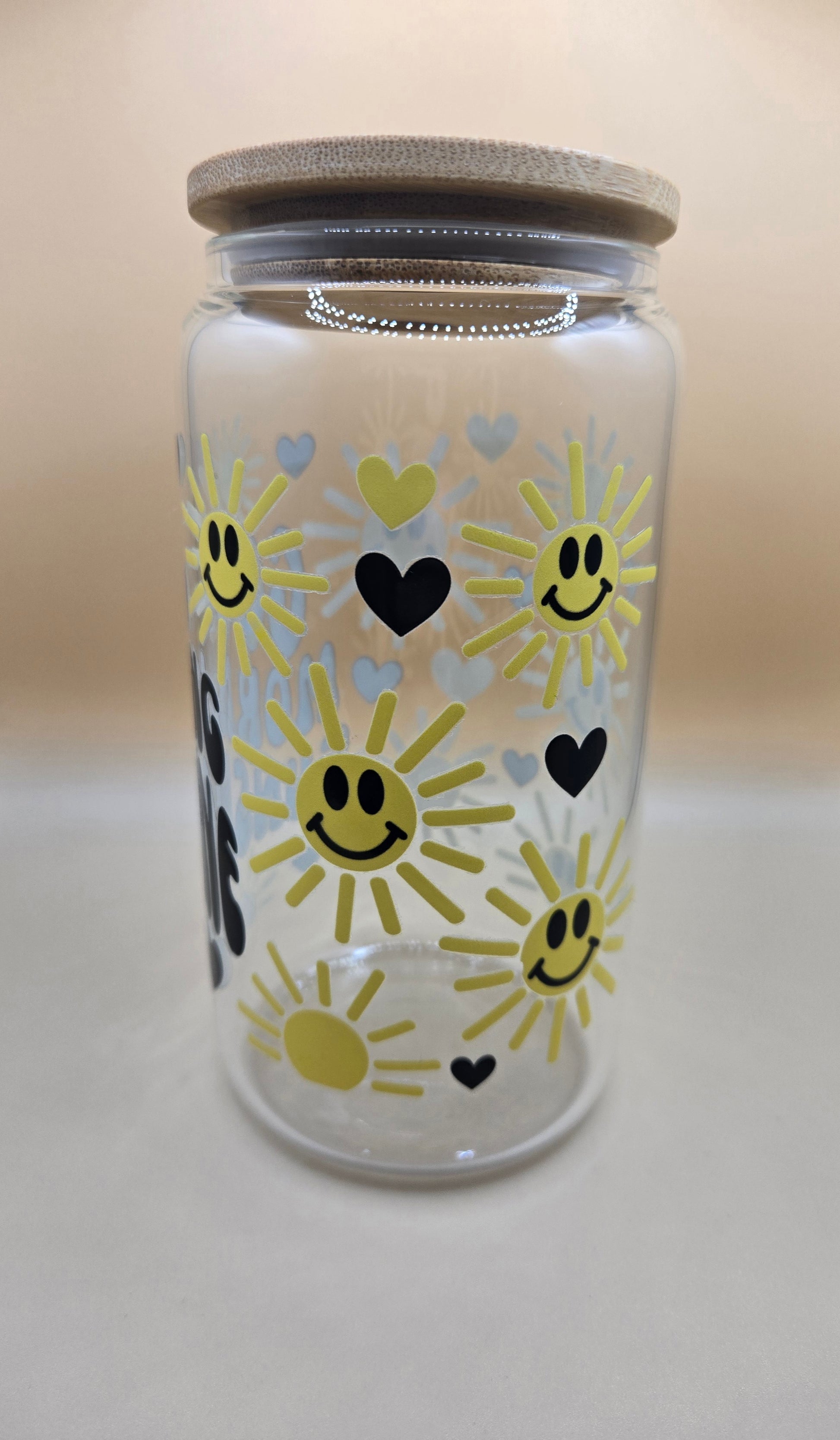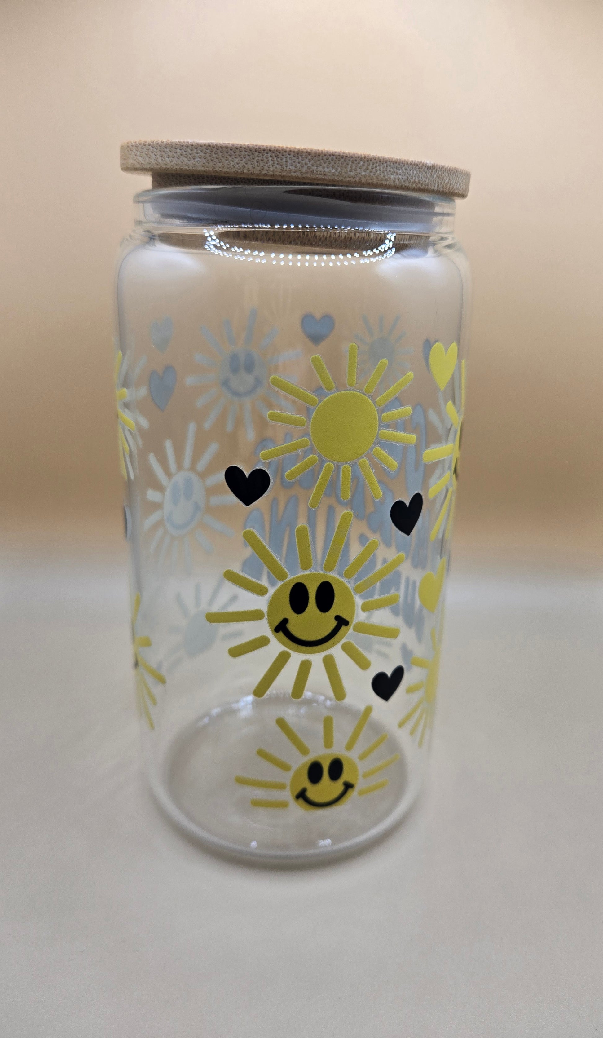 16 oz Glass Cup with Bamboo Lid and Plastic Straw