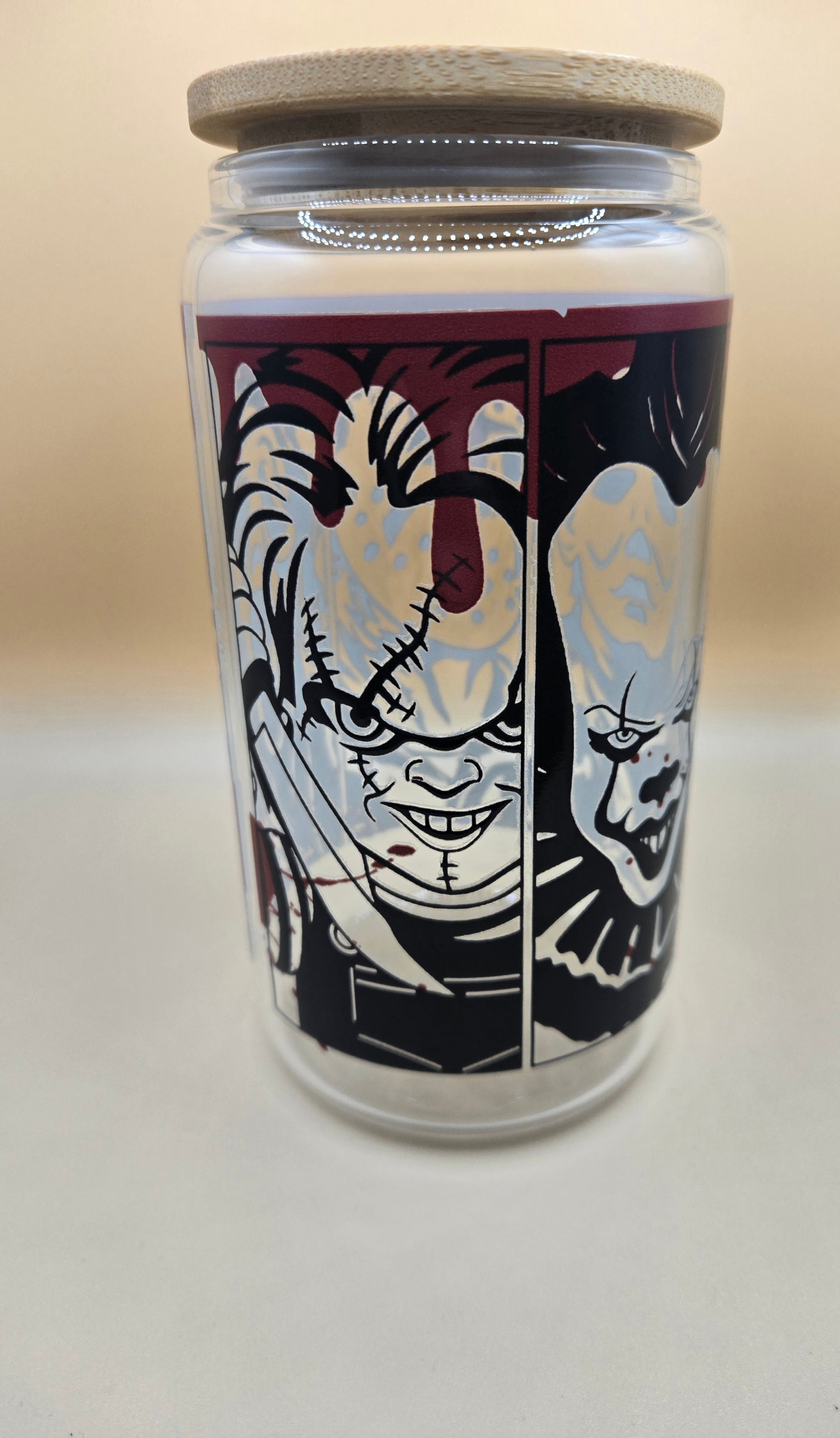 16 oz Glass Cup with Bamboo Lid and Plastic Straw