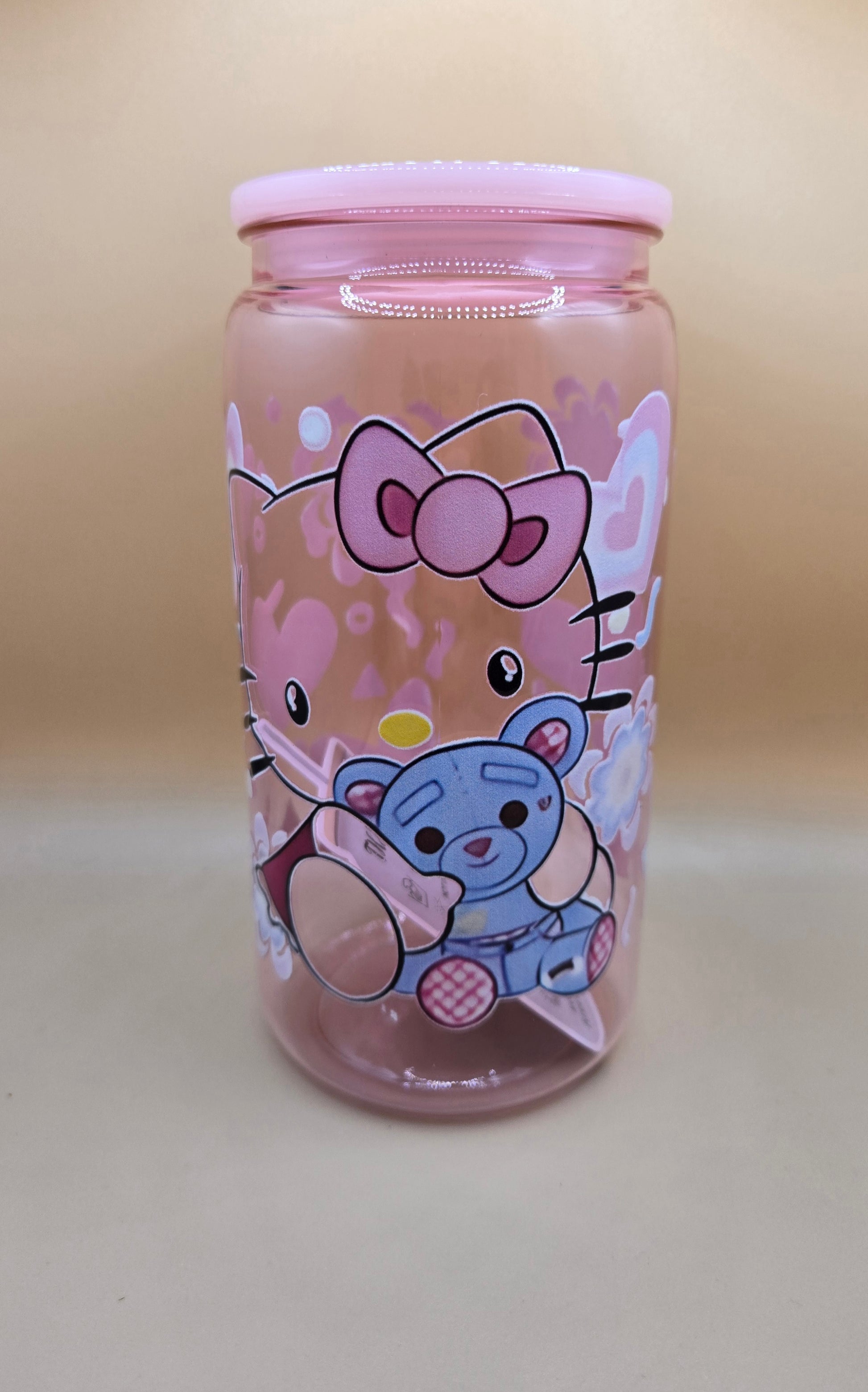 16 oz plastic Hello Kitty. Comes with plastic Straw.