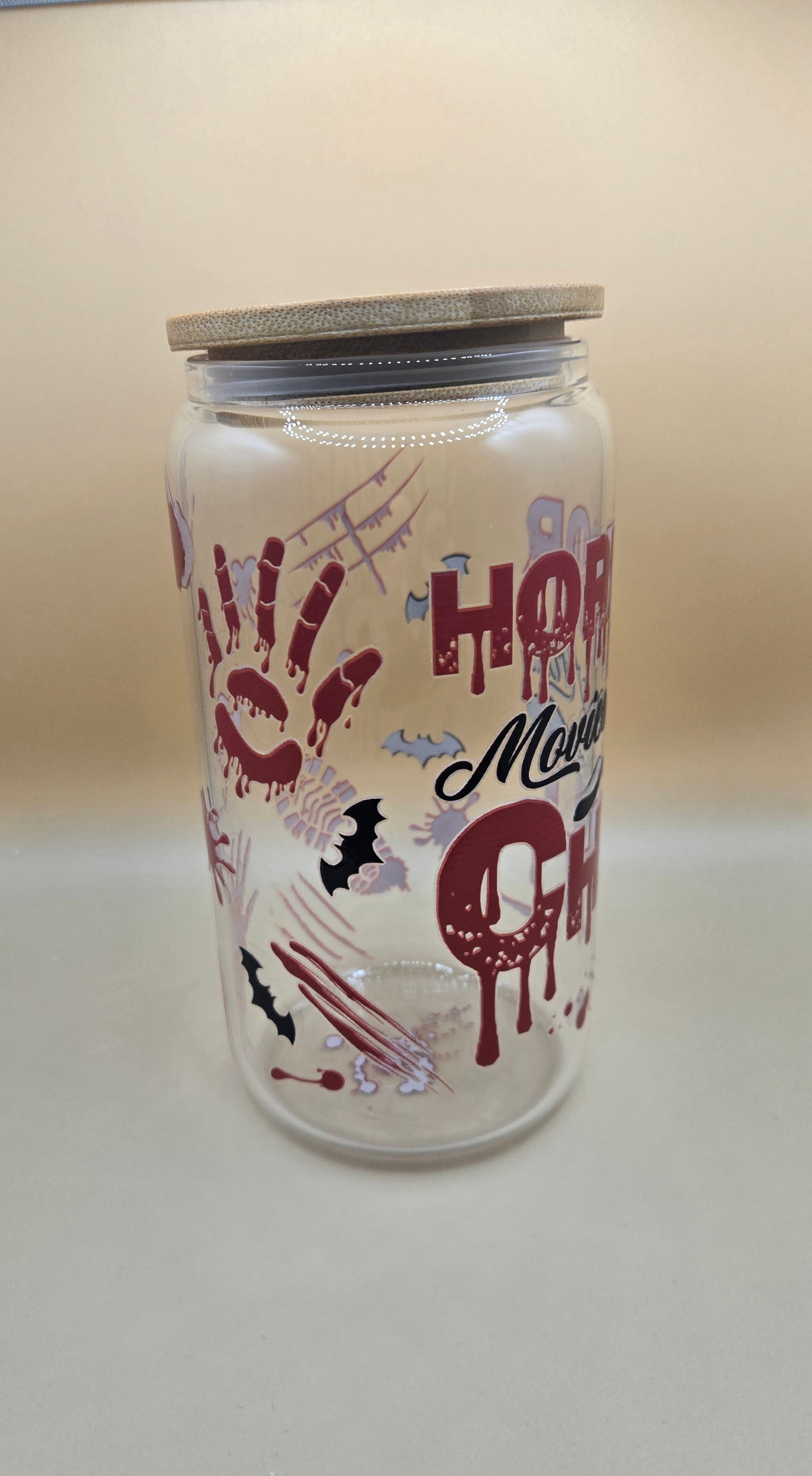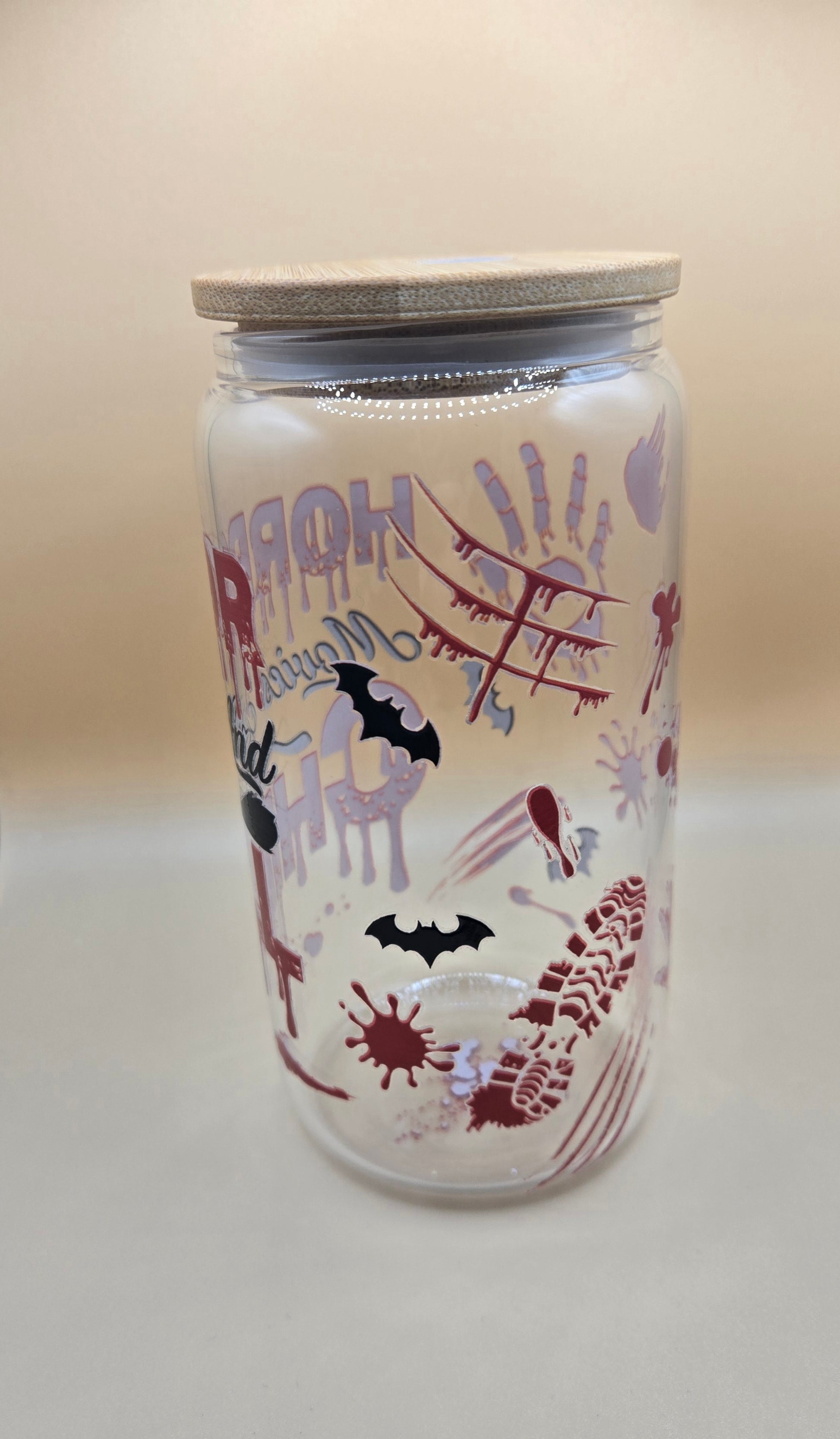 16 oz Glass Cup with Bamboo Lid and Plastic Straw