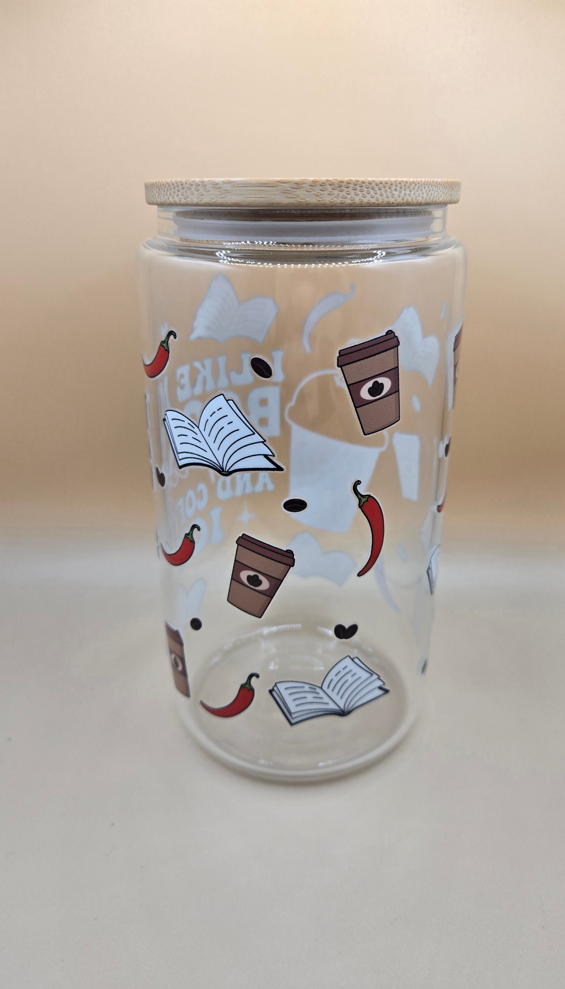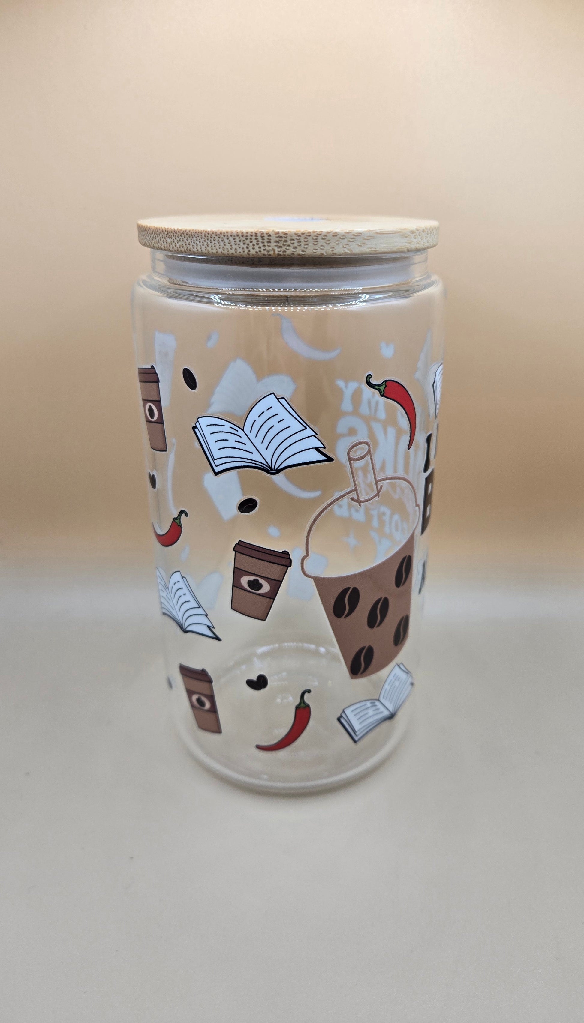 16 oz glass I Like My Books Spicy...comes with glass straw but if you want plastic please let us know.