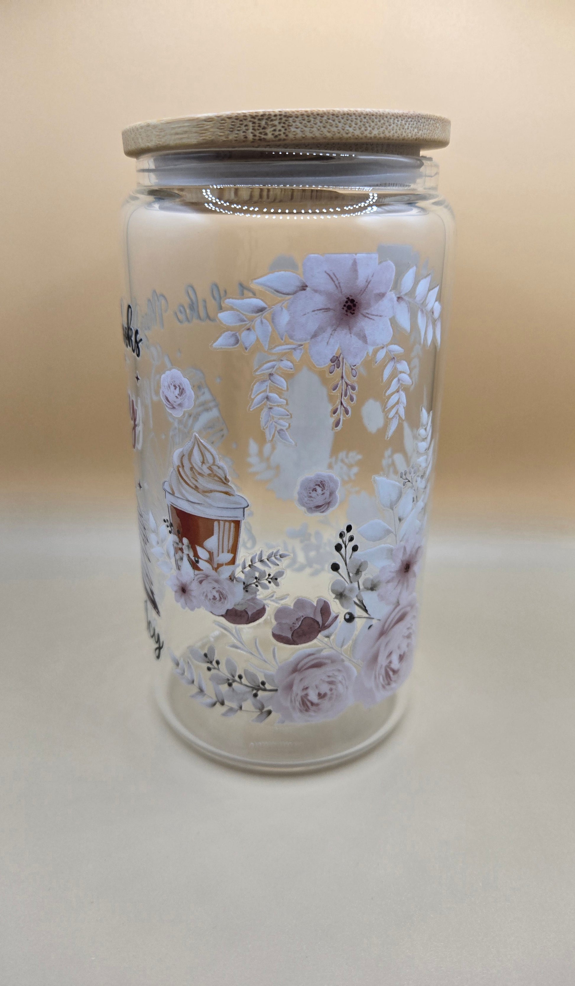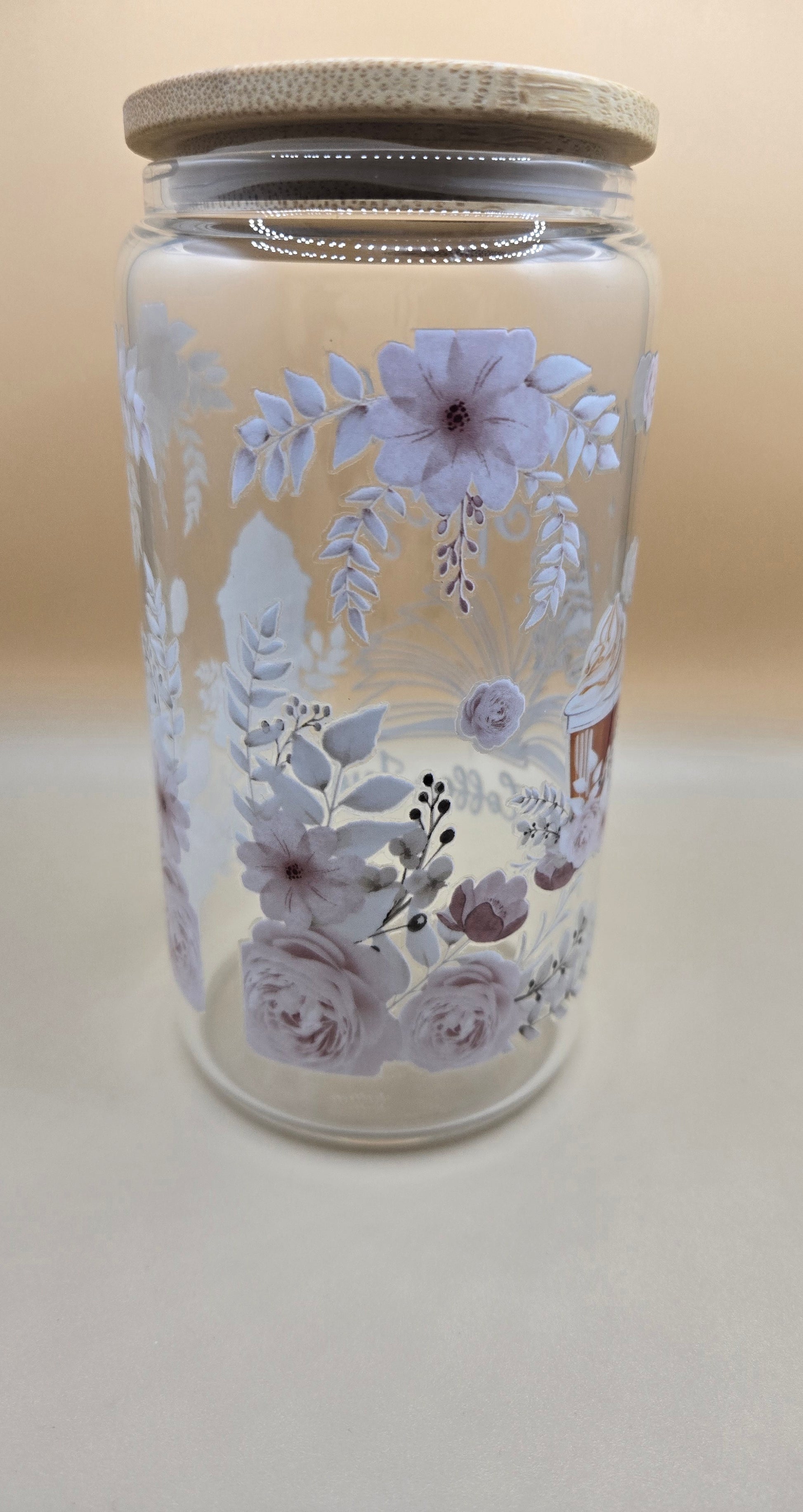 16 oz Glass Cup with Bamboo Lid and Plastic Straw