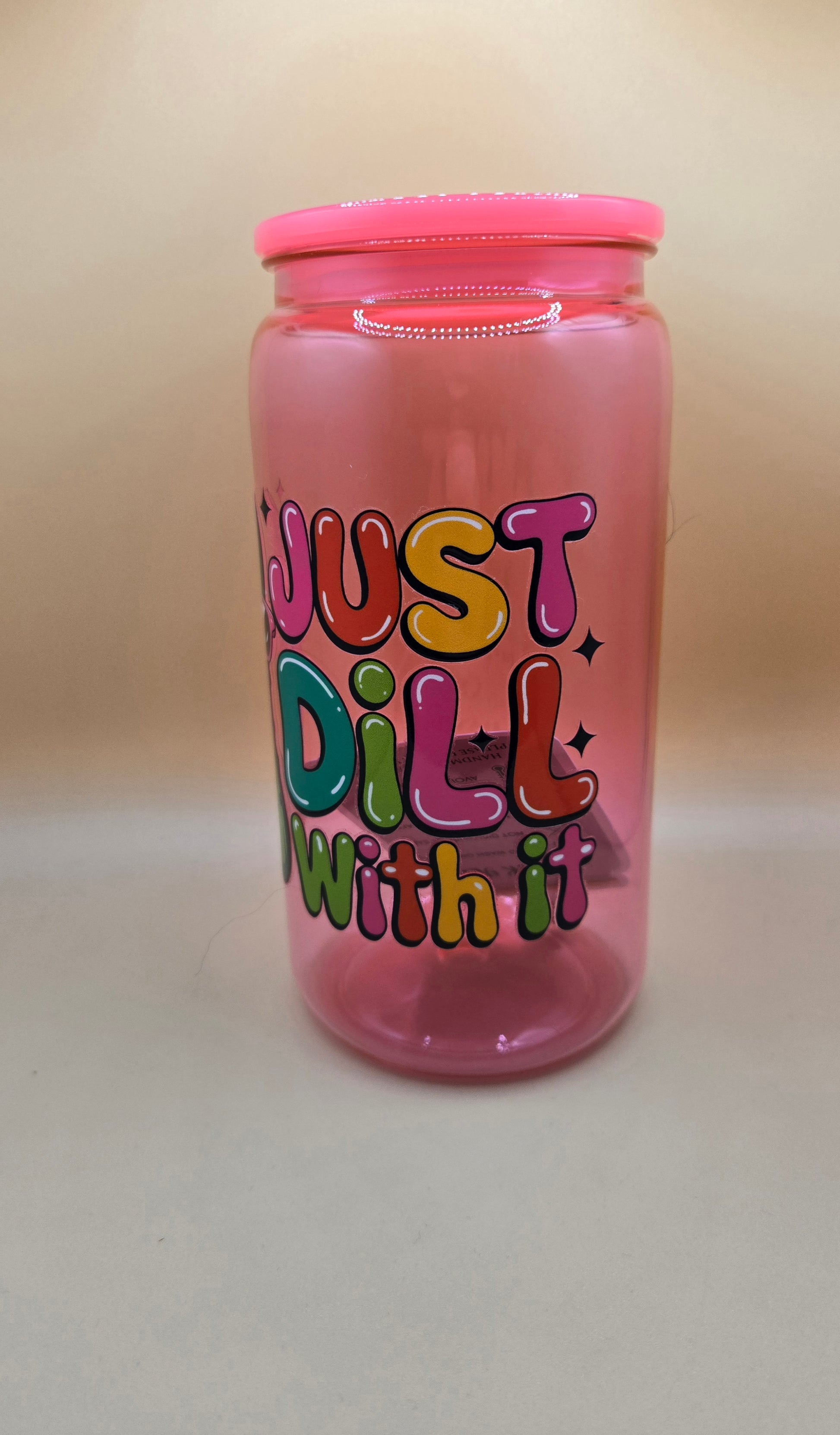 16 oz plastic Just Dill With It. Comes with plastic Straw.