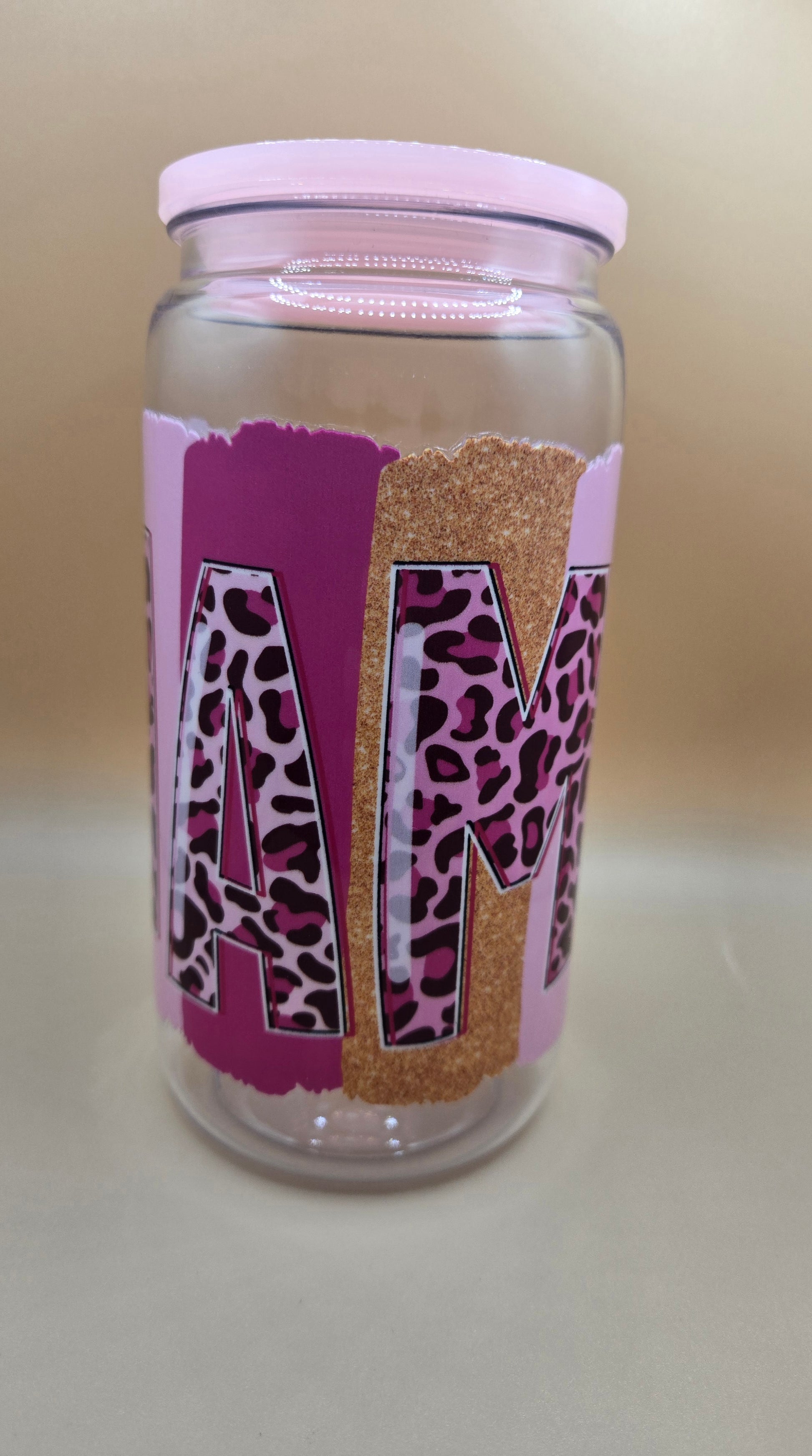 16 oz plastic Mama. Comes with plastic Straw.