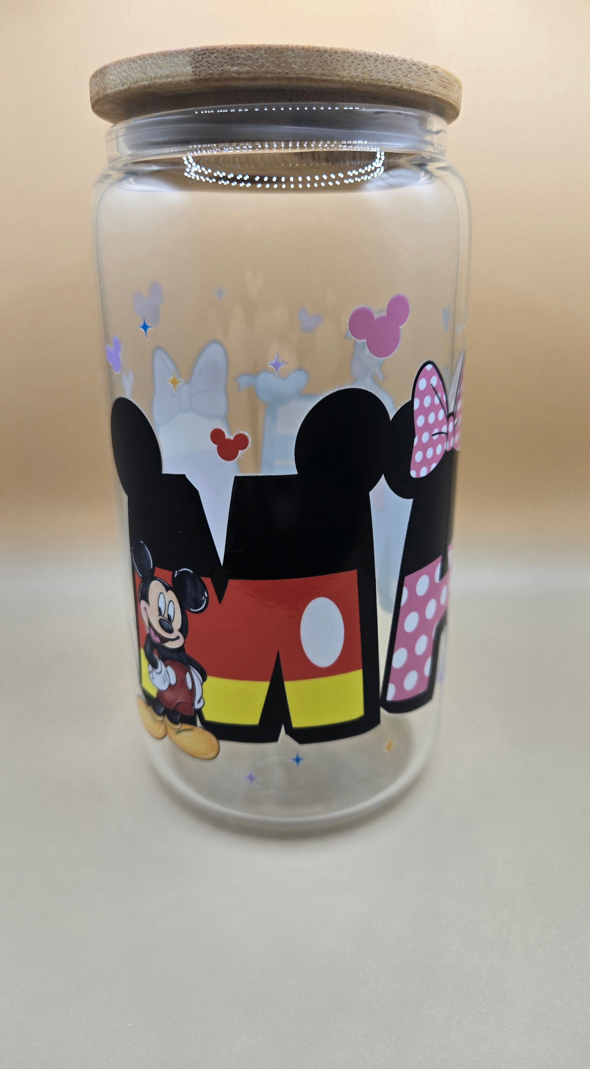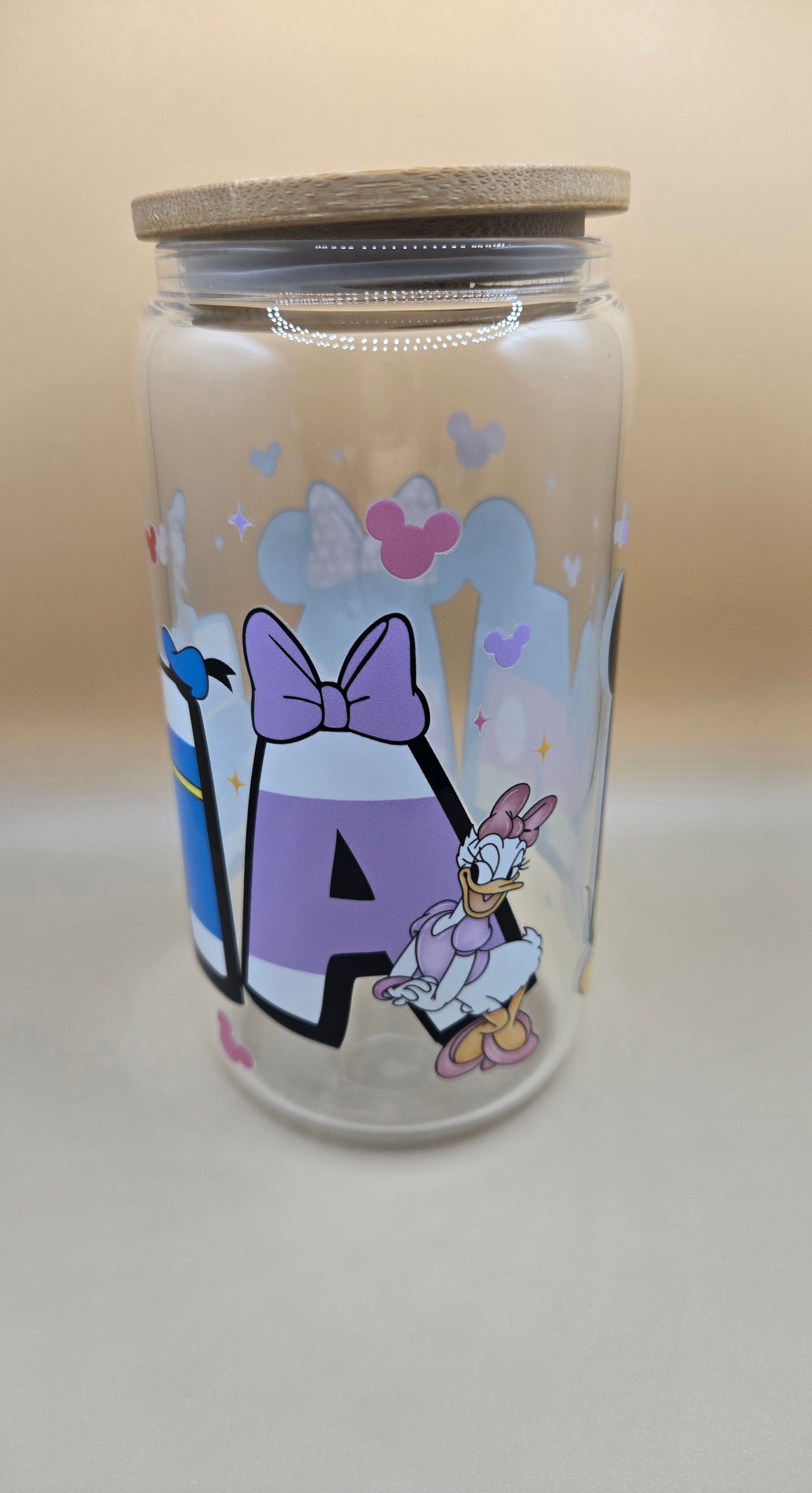 16 oz Glass Cup with Bamboo Lid and Plastic Straw