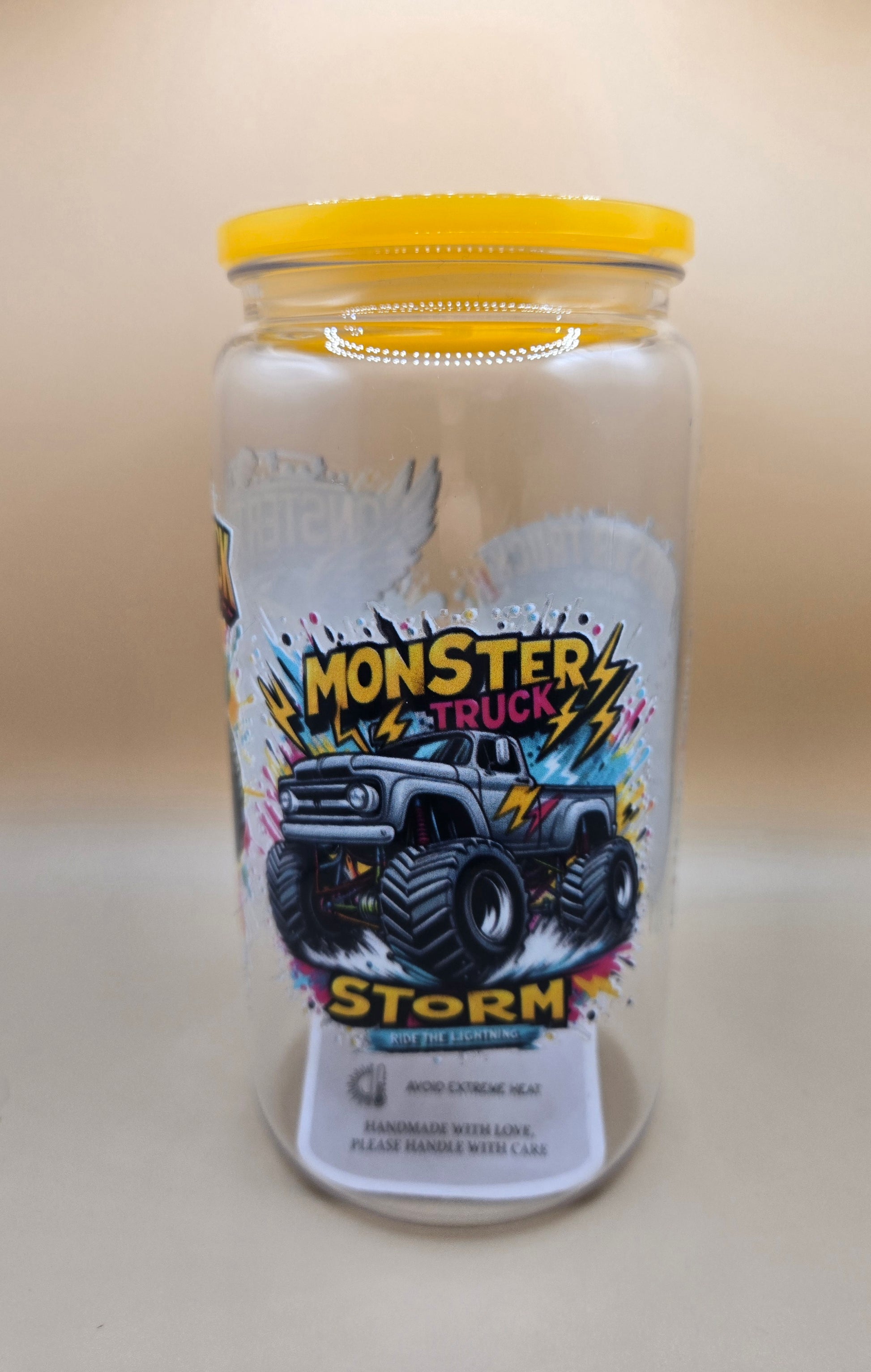16 oz Plastic Monster Trucks. Comes with plastic Straw.
