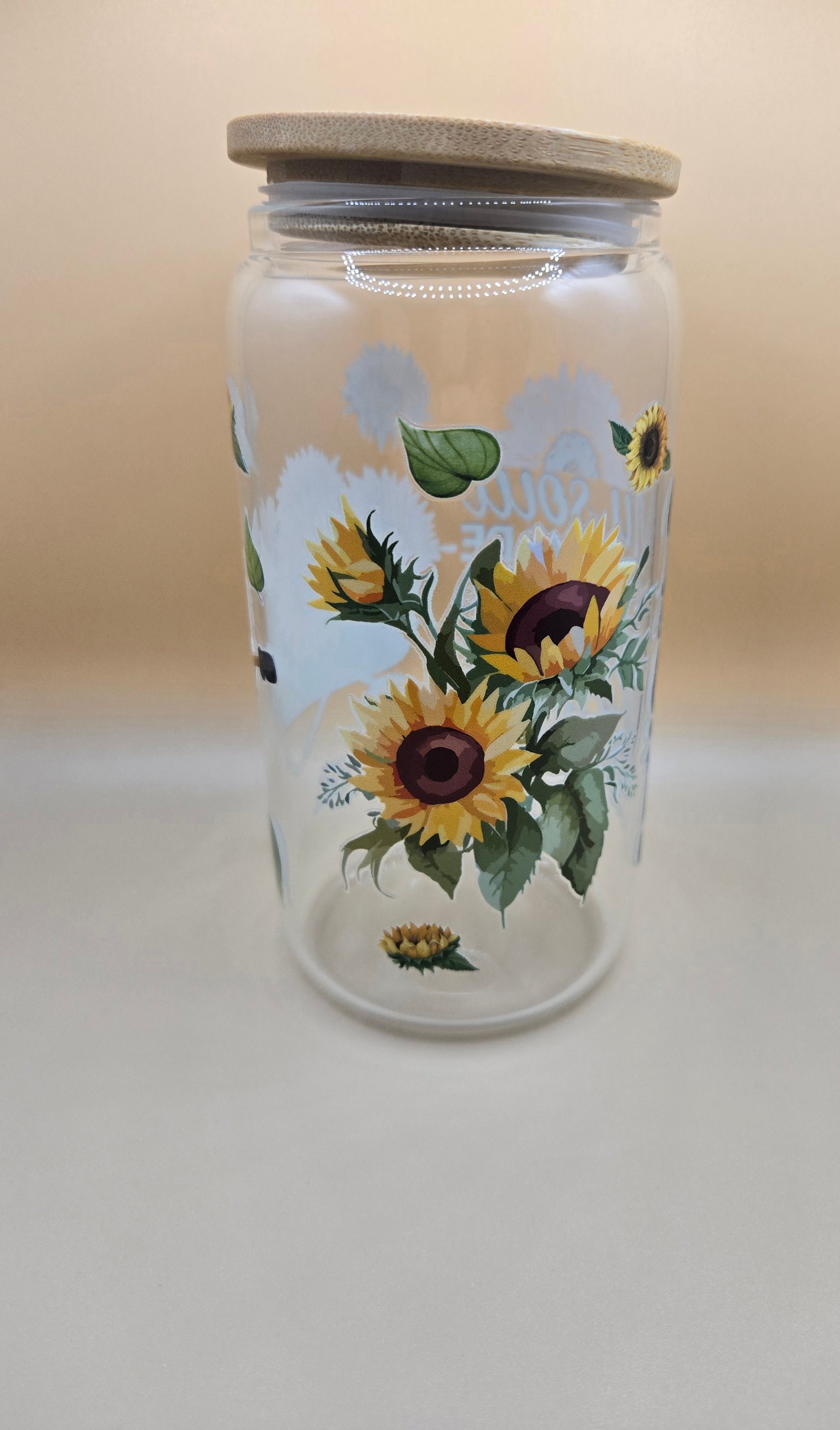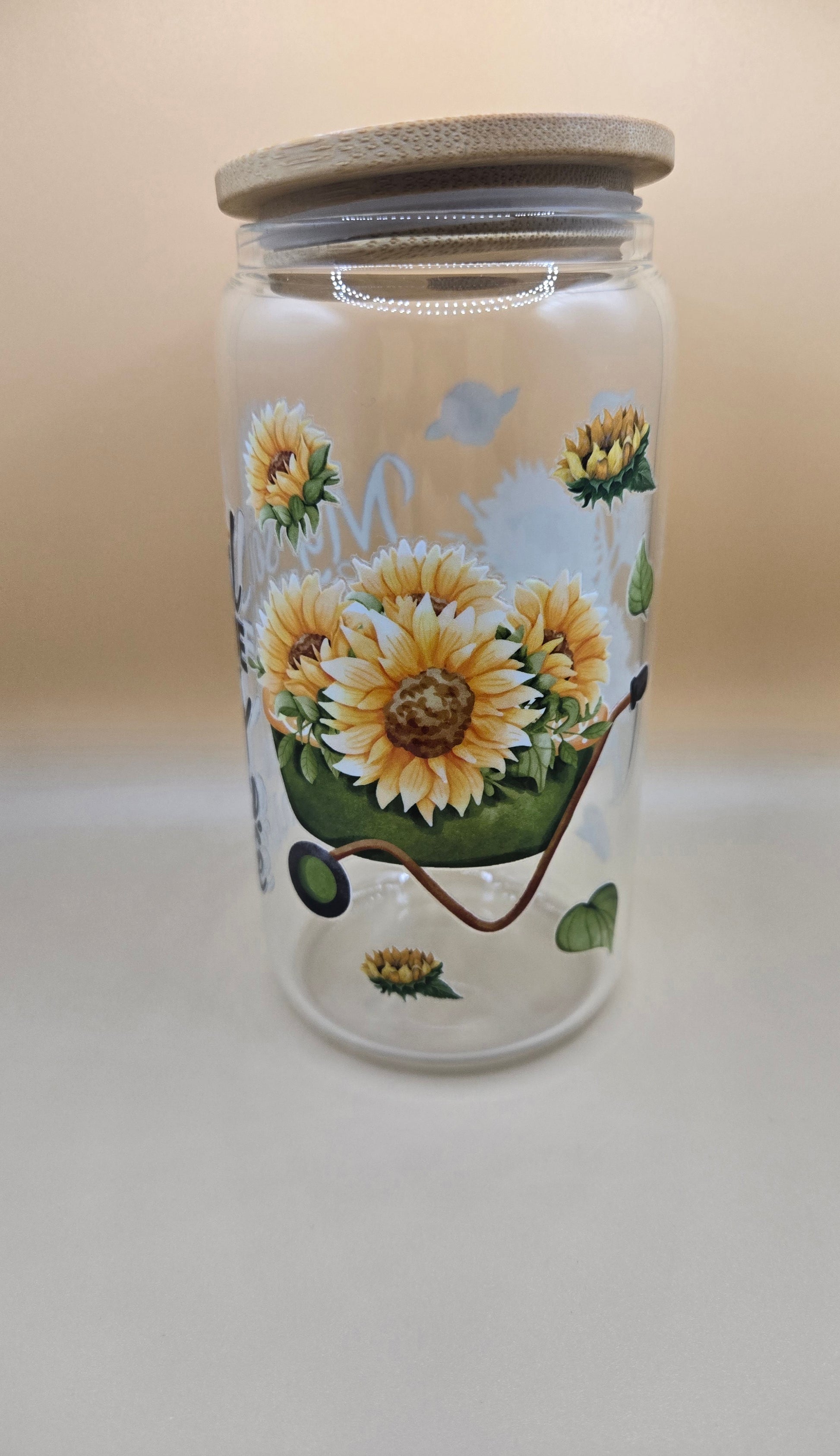16 oz Glass Cup with Bamboo Lid and Plastic Straw