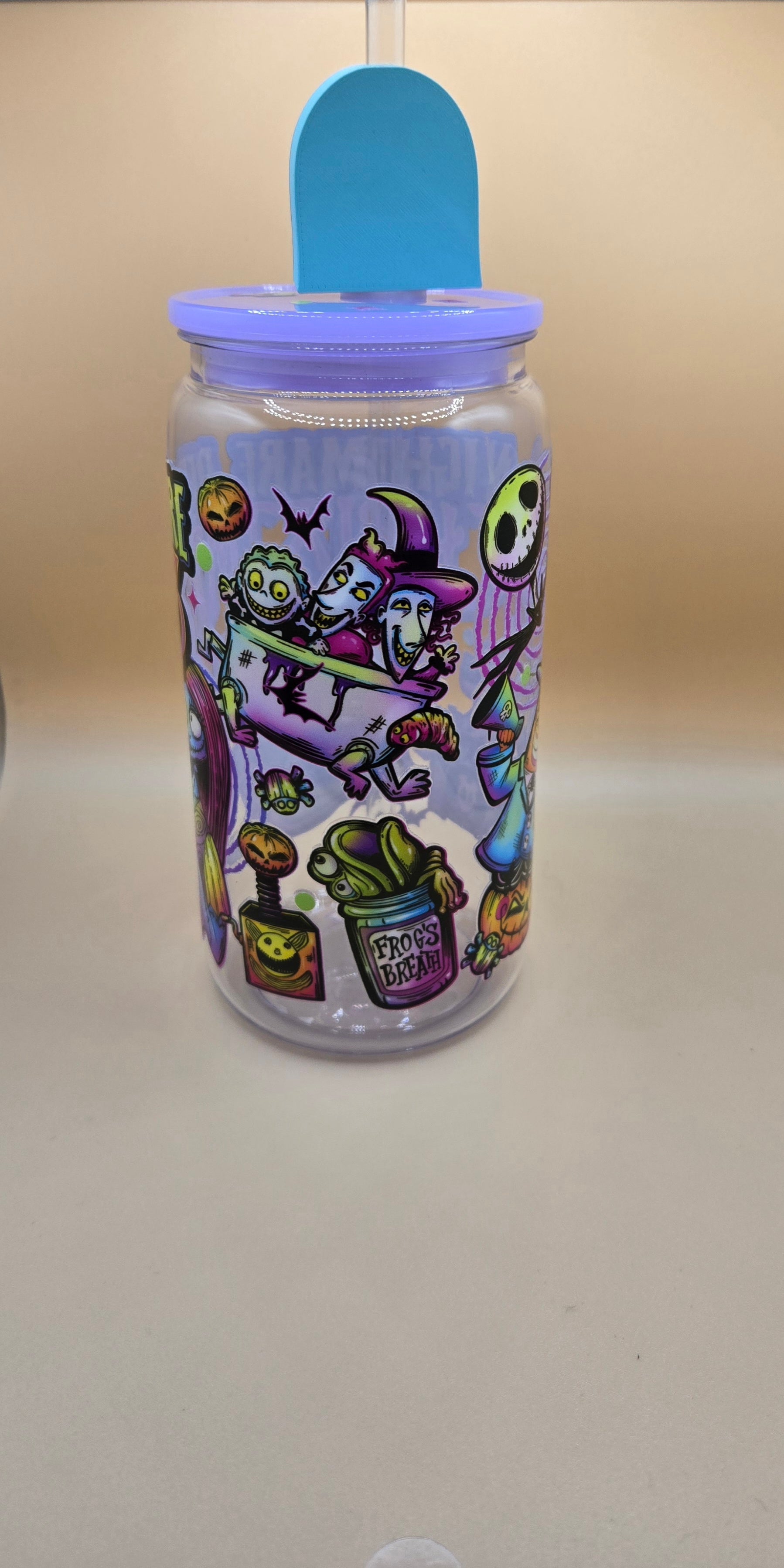 16 oz Nighmarr Before Christmas plastic cup with Straw topper.