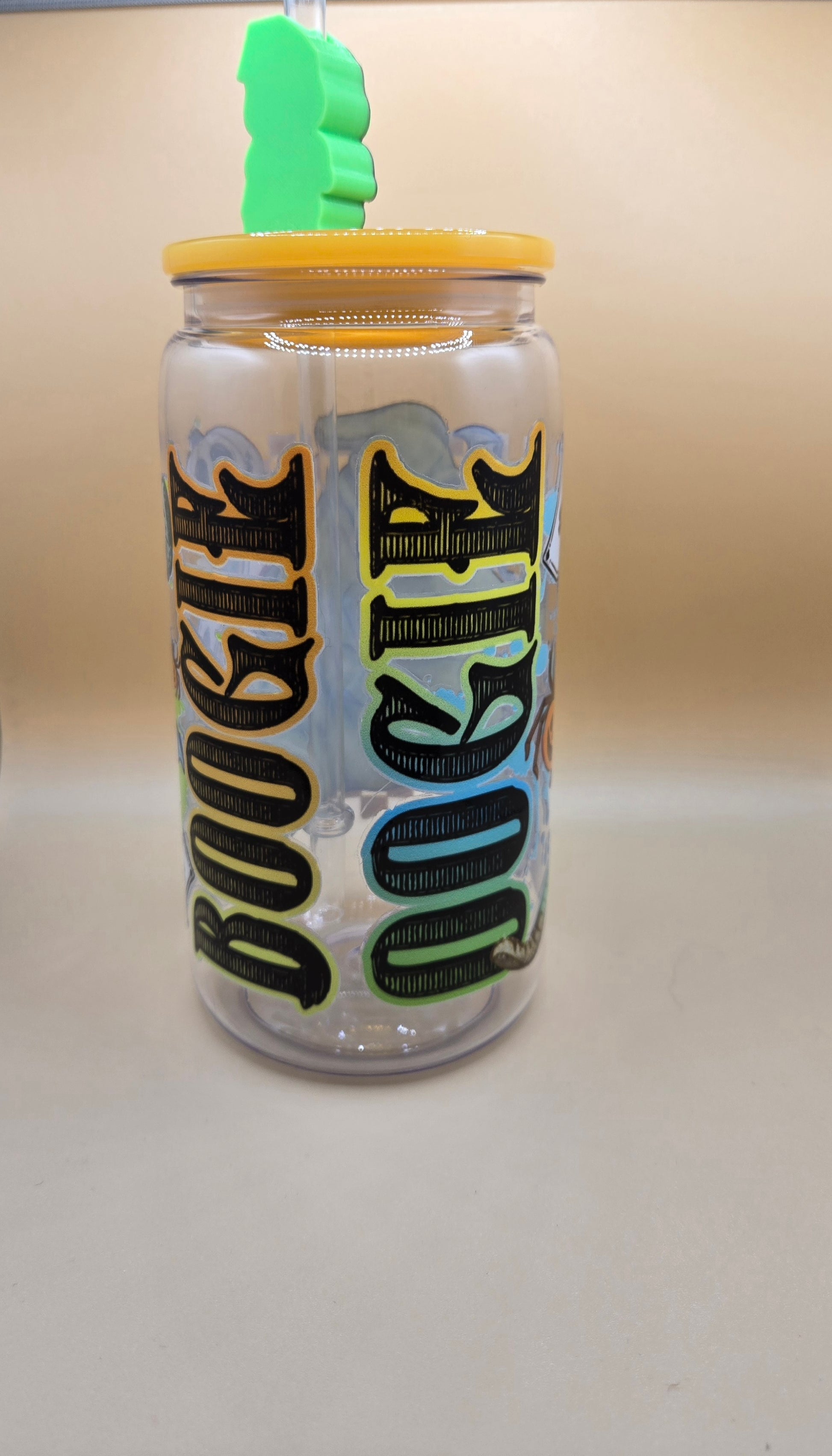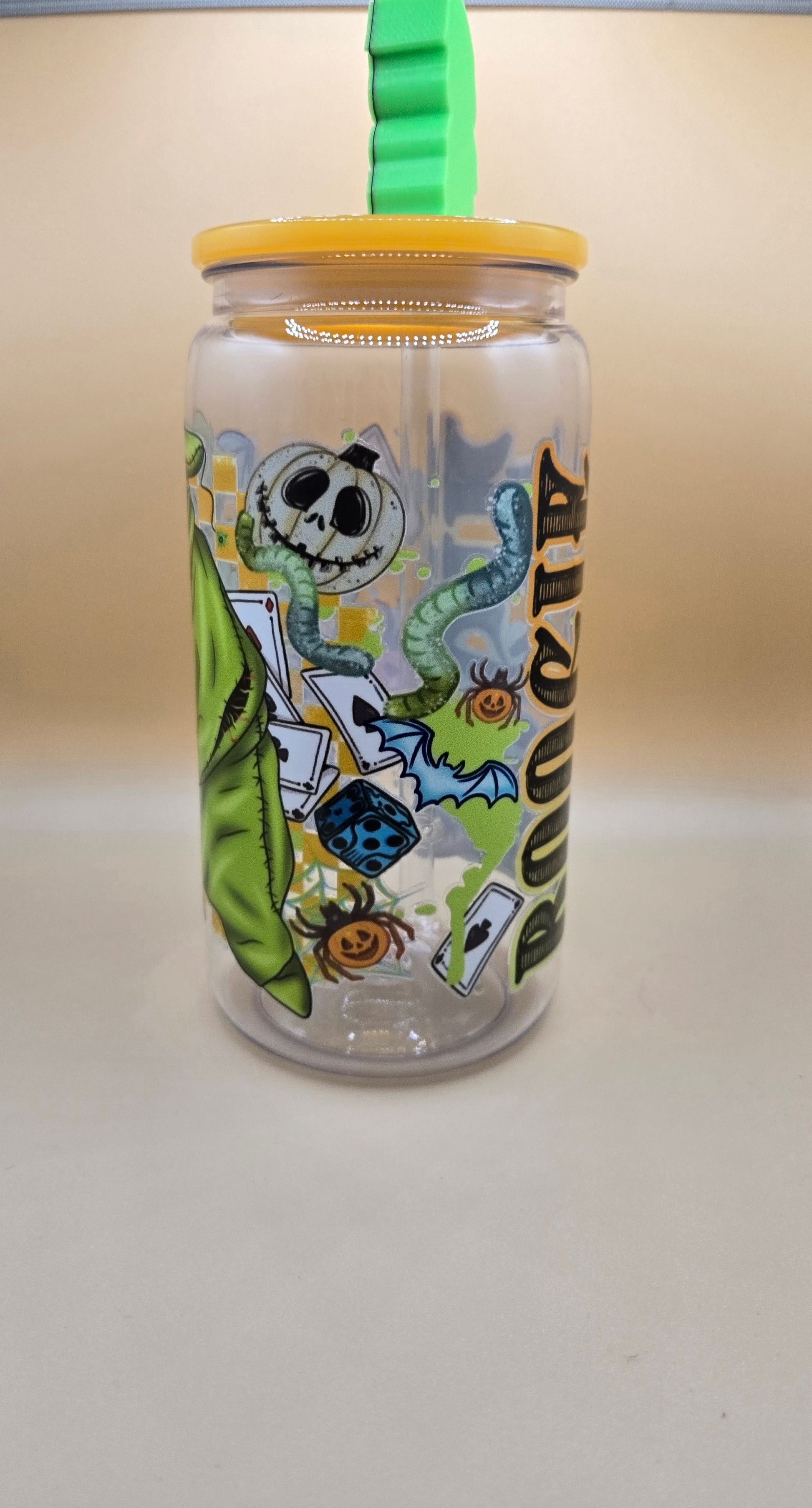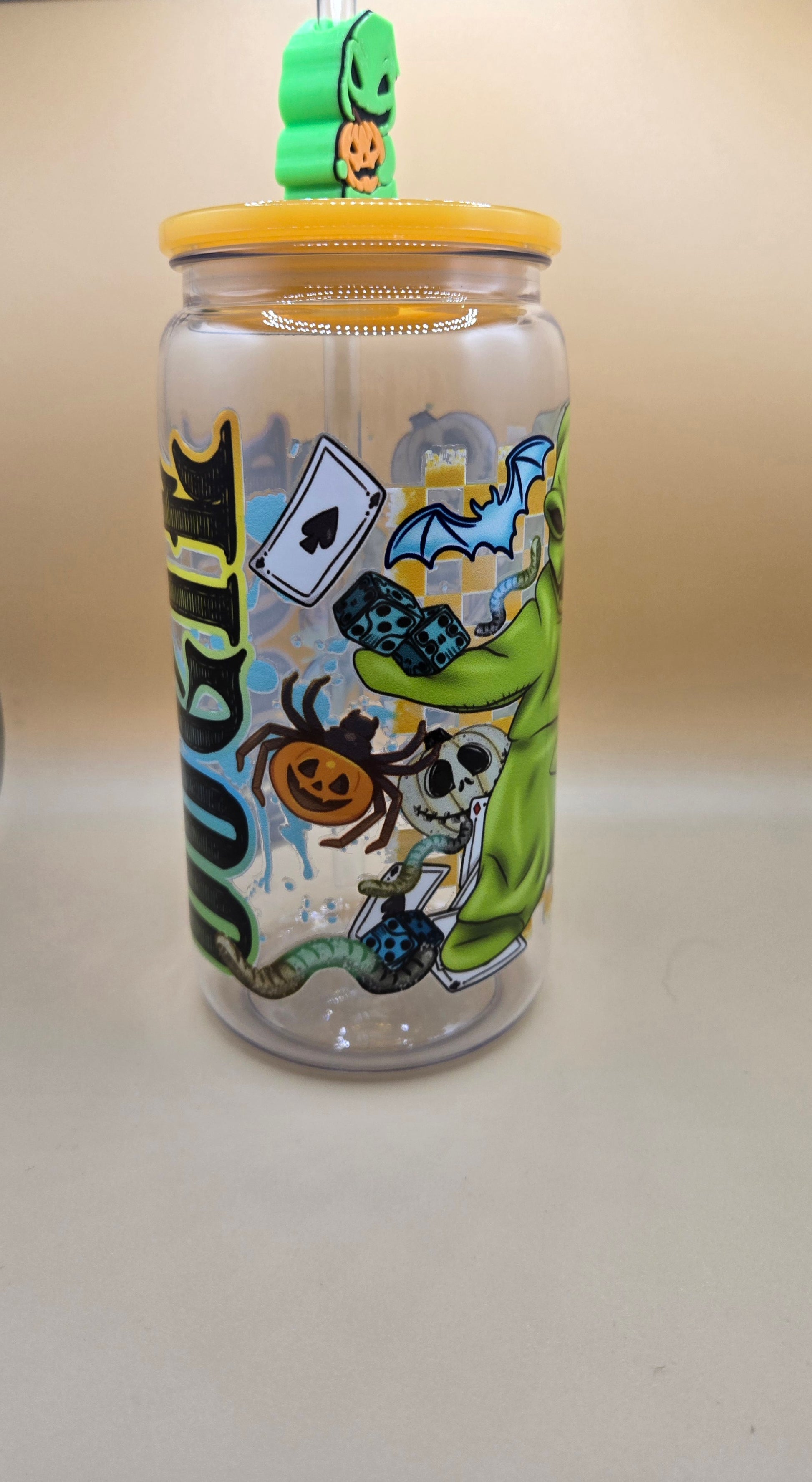 16 oz Oogie Boogie plastic cup with Straw Topper.