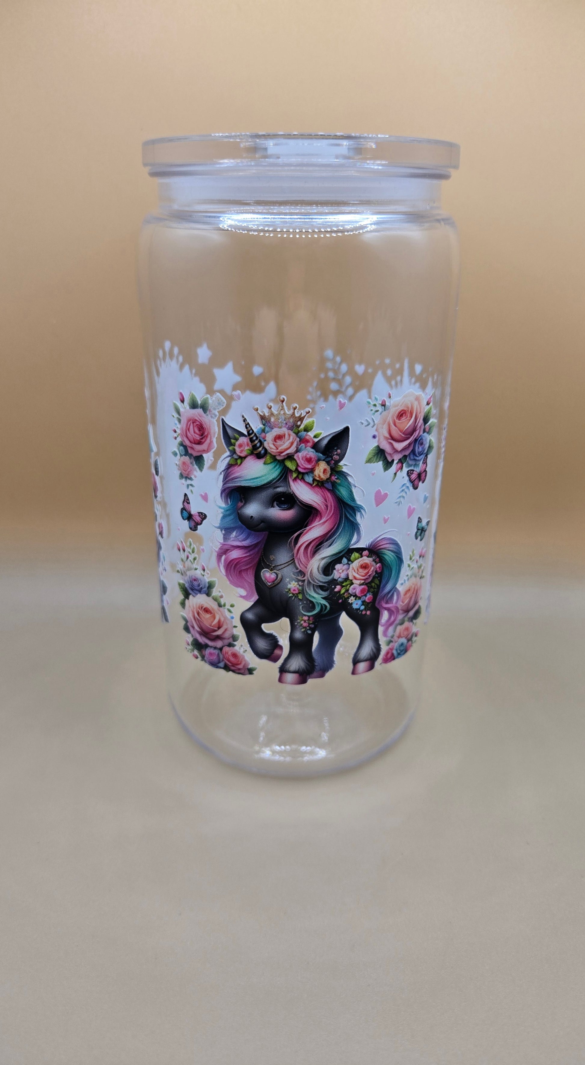 16 oz Plastic Cup with Colored Lid and Plastic Straw