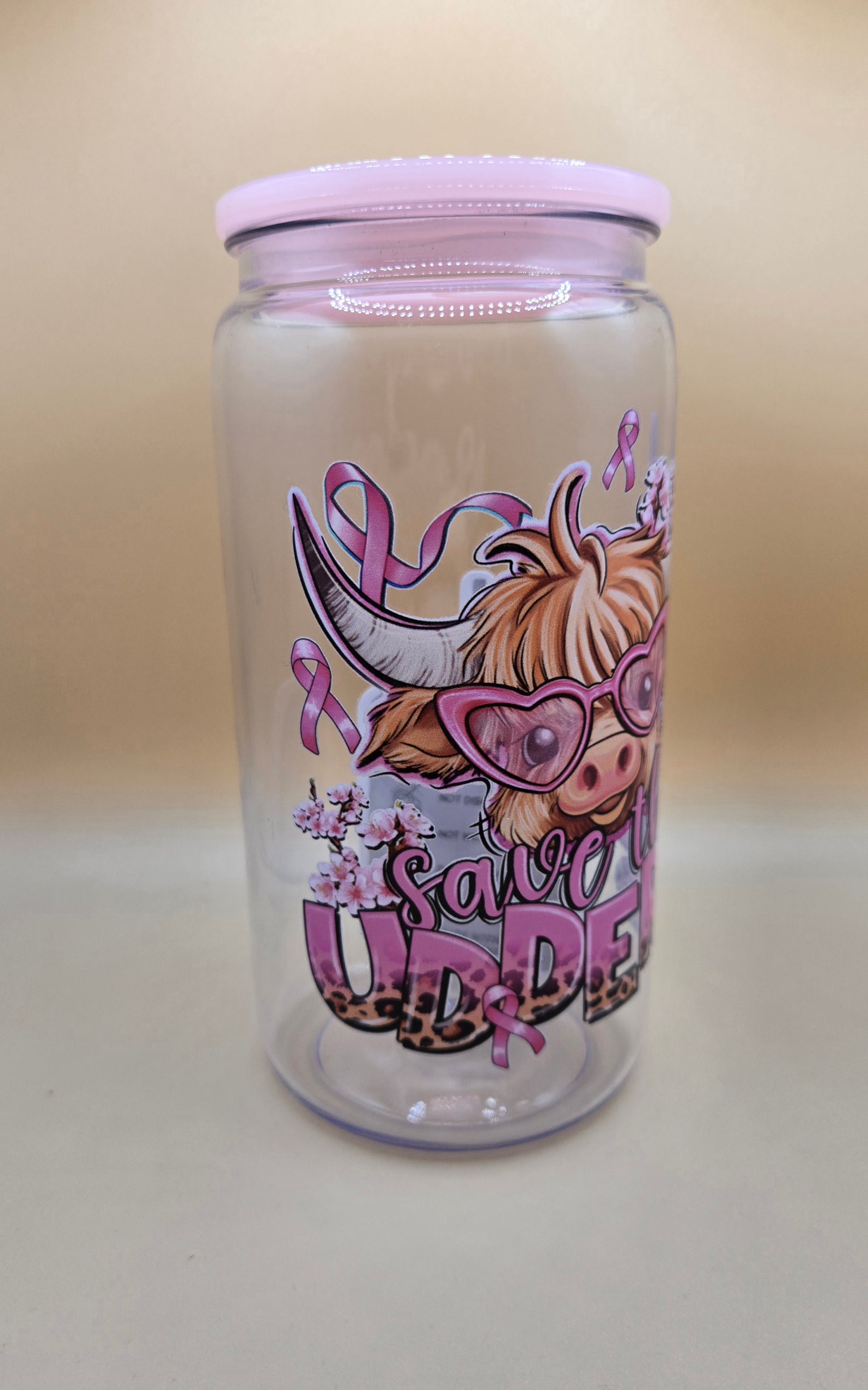 16 oz plastic Save the Udders Cup. Comes with plastic Straw.