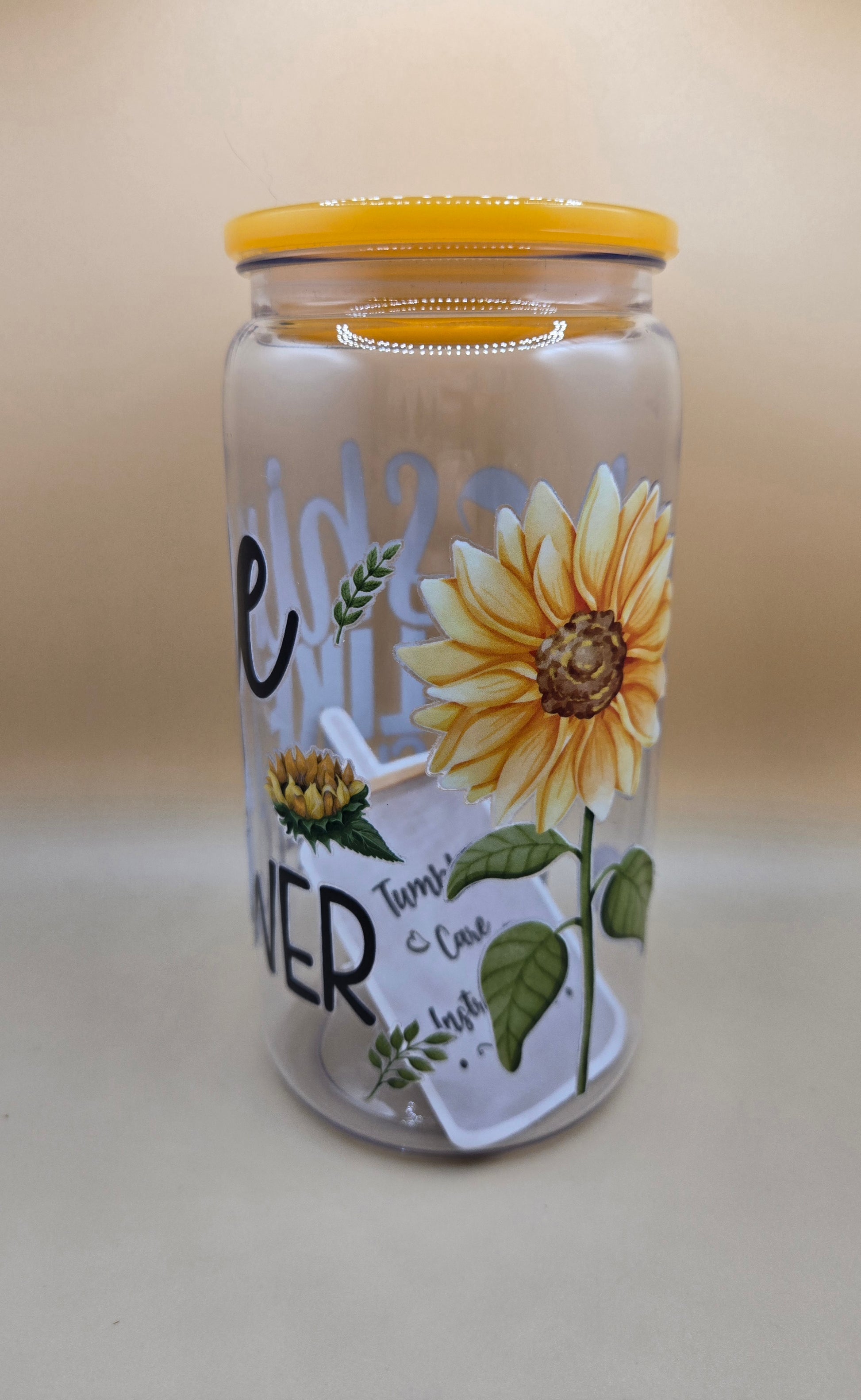 16 oz plastic Shine like a Sunflower. Comes with plastic Straw.