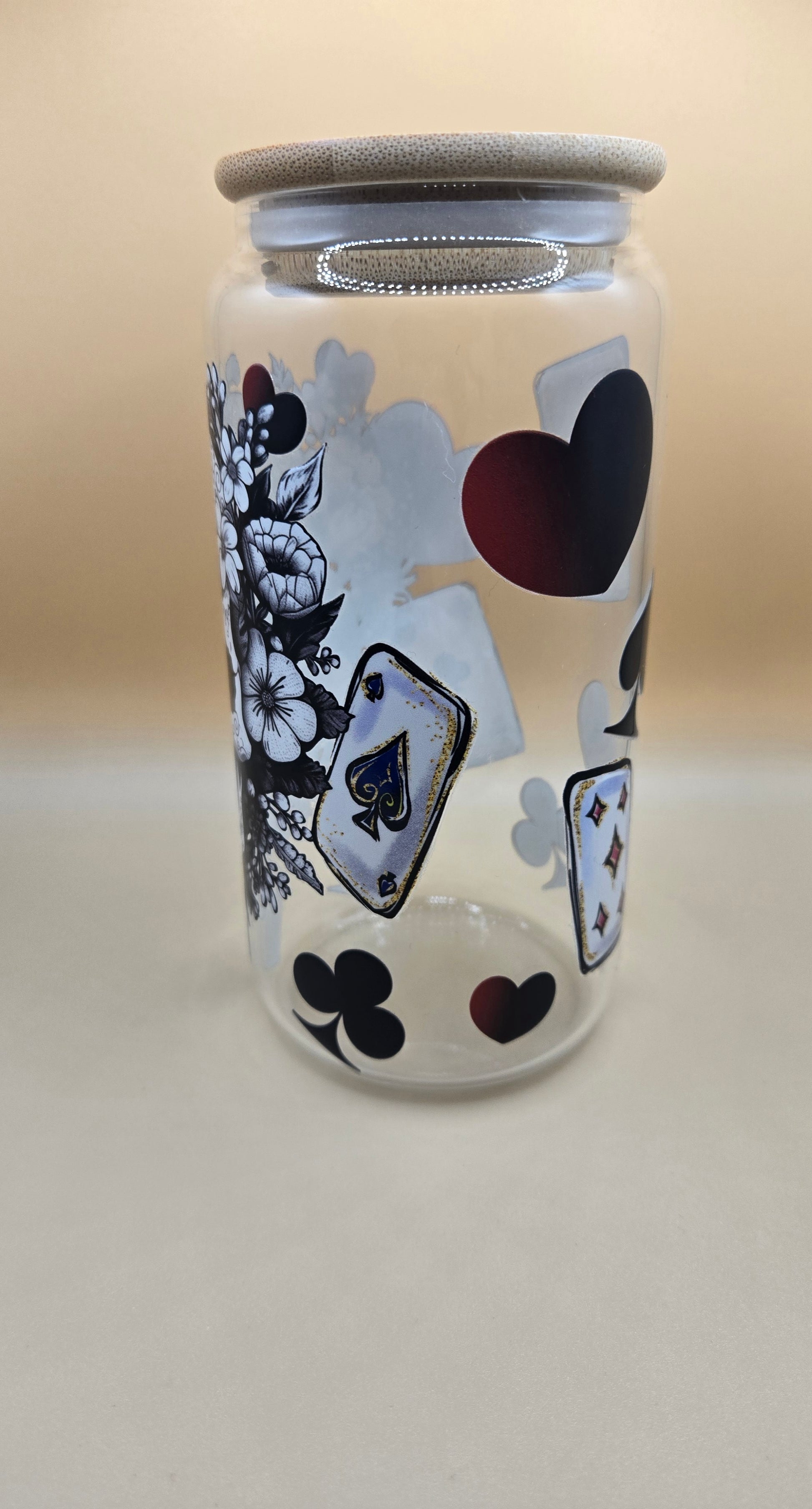 16 oz Glass Cup with Bamboo Lid and Plastic Straw