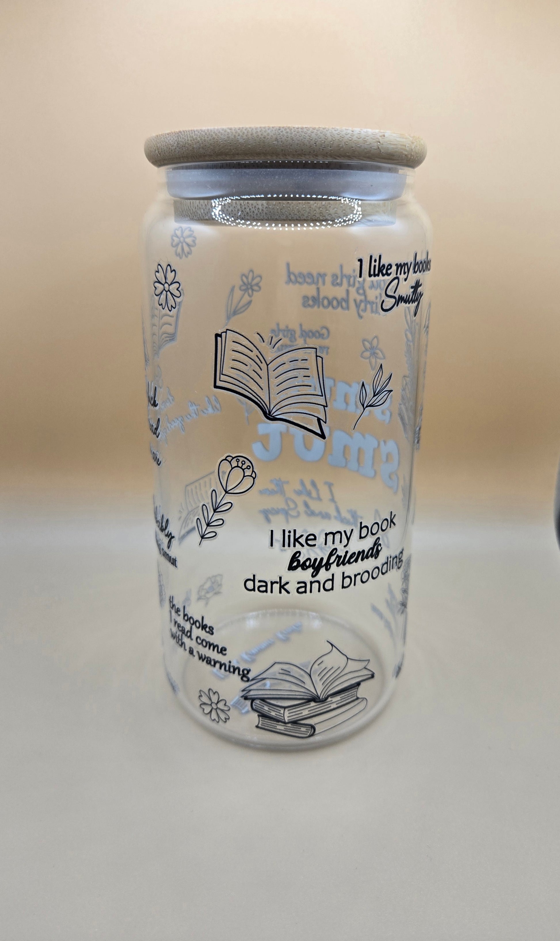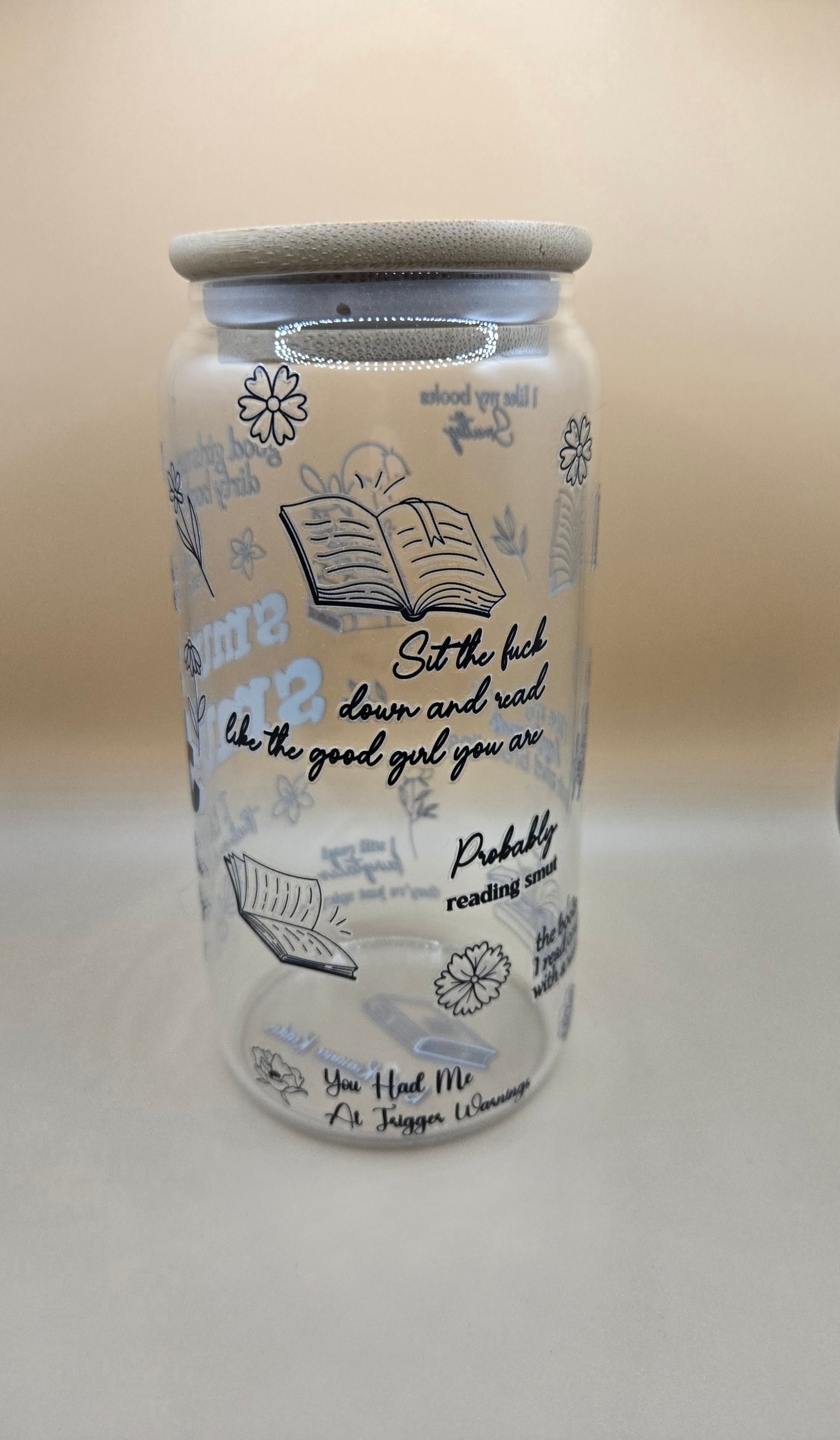16 oz Glass Cup with Bamboo Lid and Plastic Straw