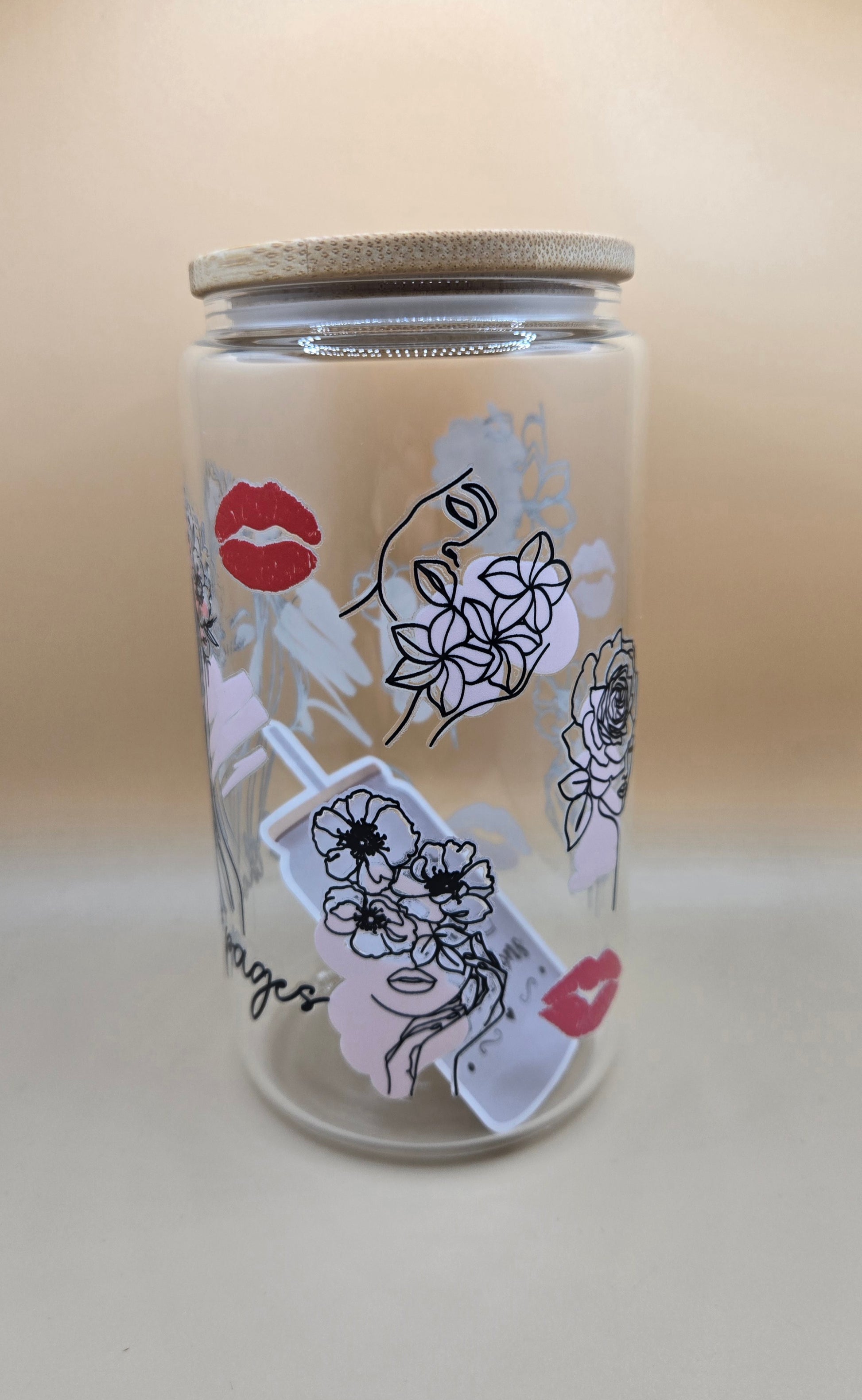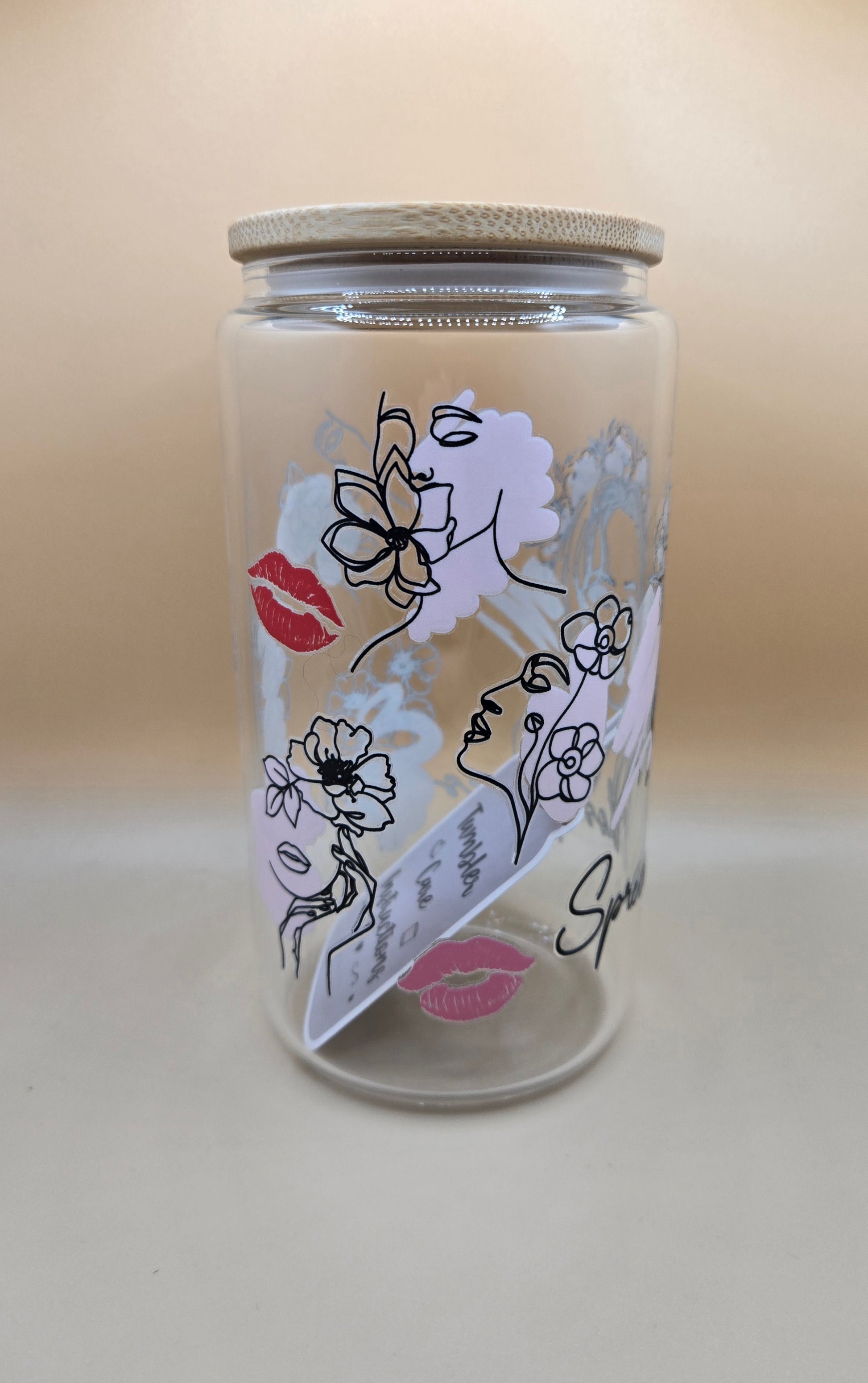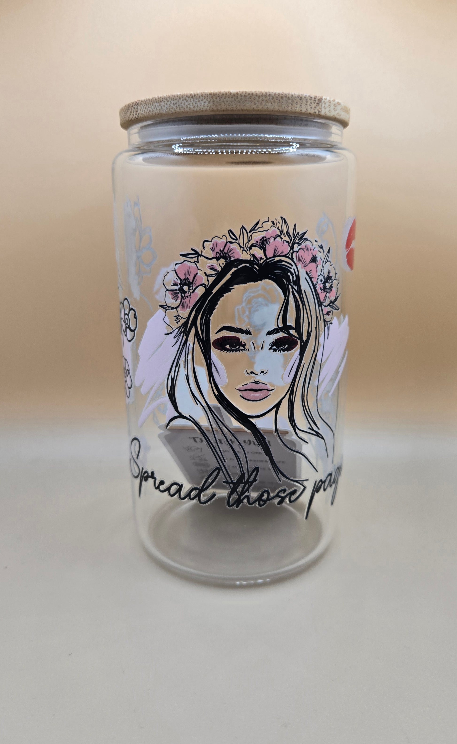 16 oz Glass Spread Those Pages. Comes with glass straw but if you want plastic let us know.