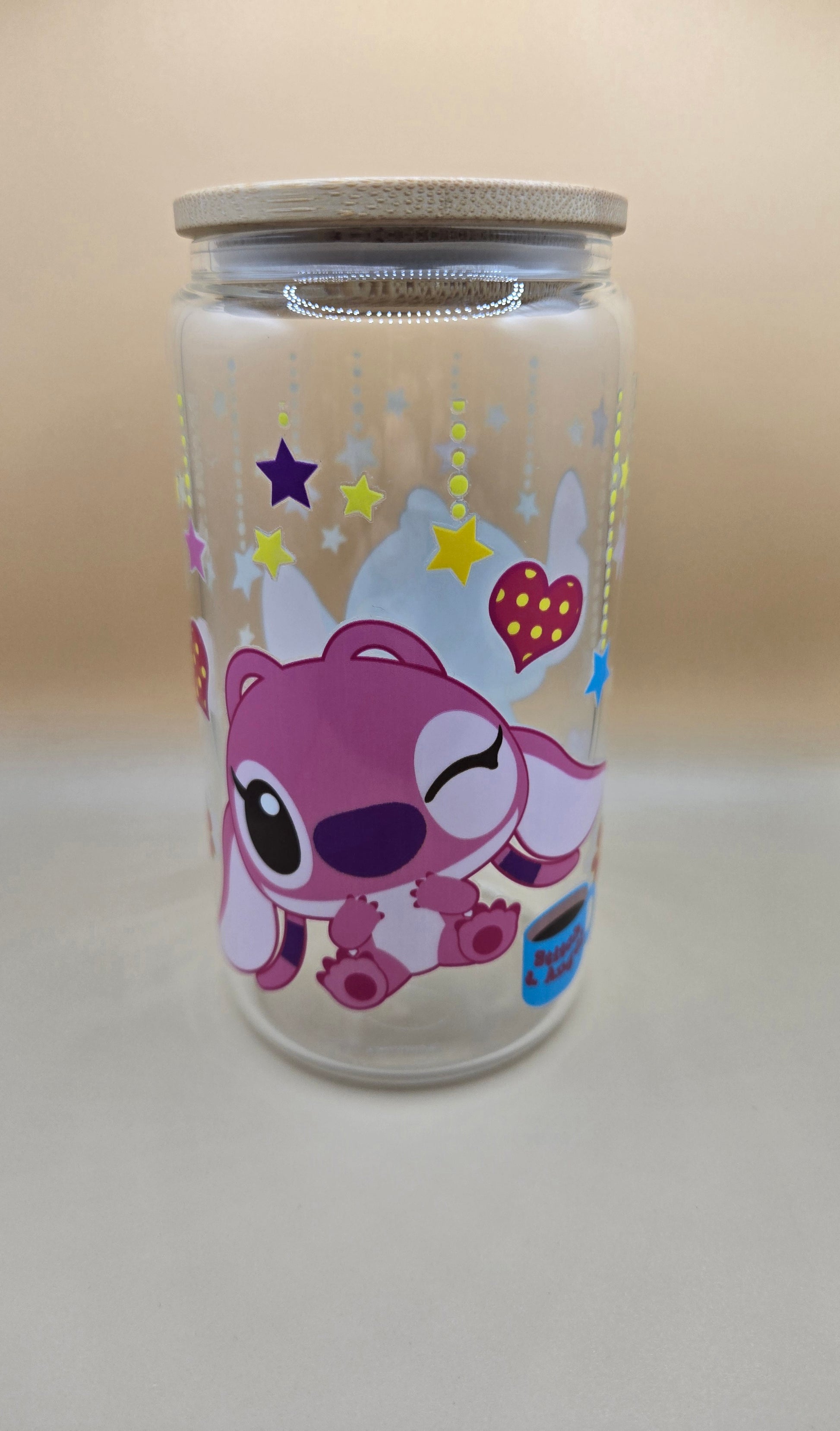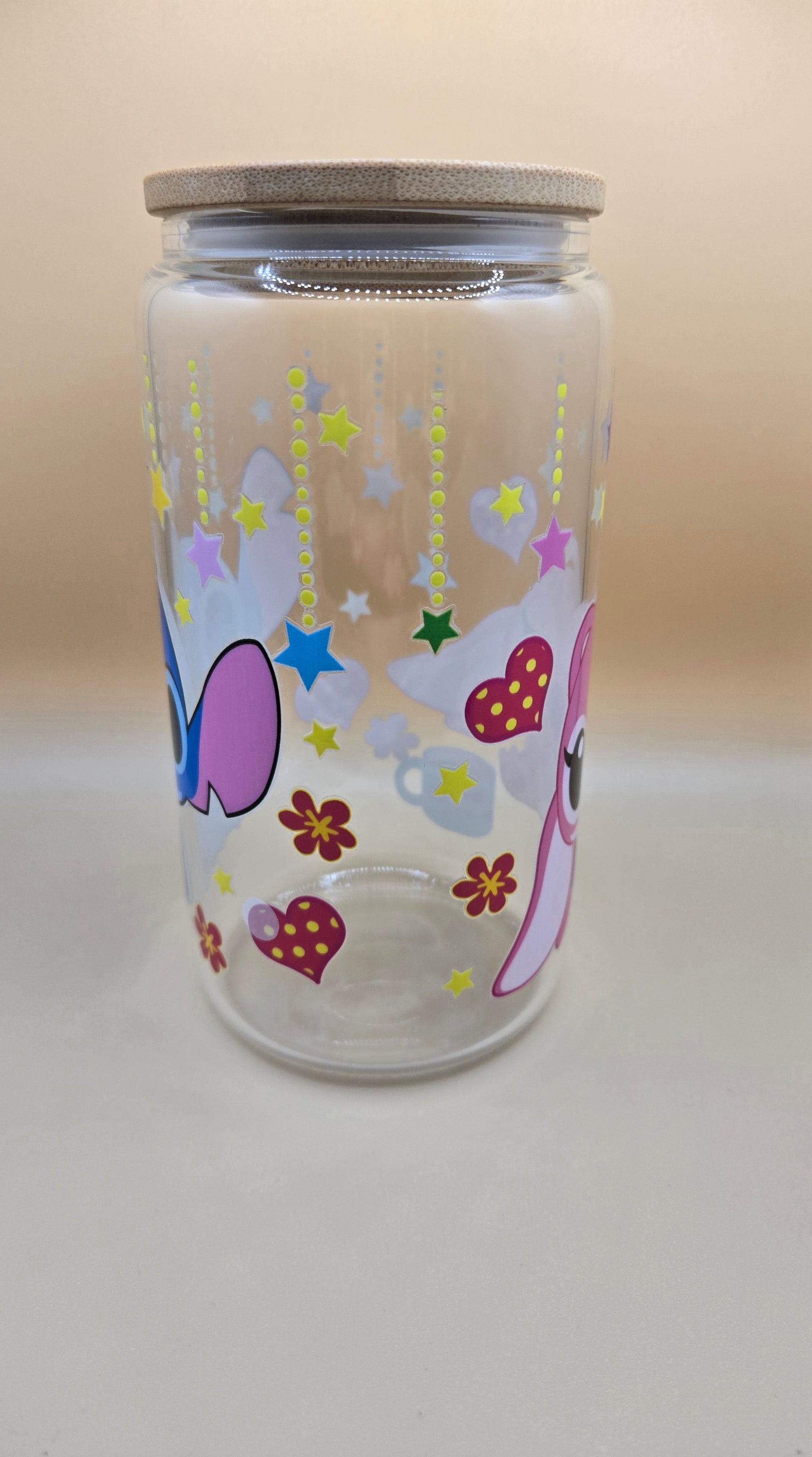 16 oz Glass Cup with Bamboo Lid and Plastic Straw