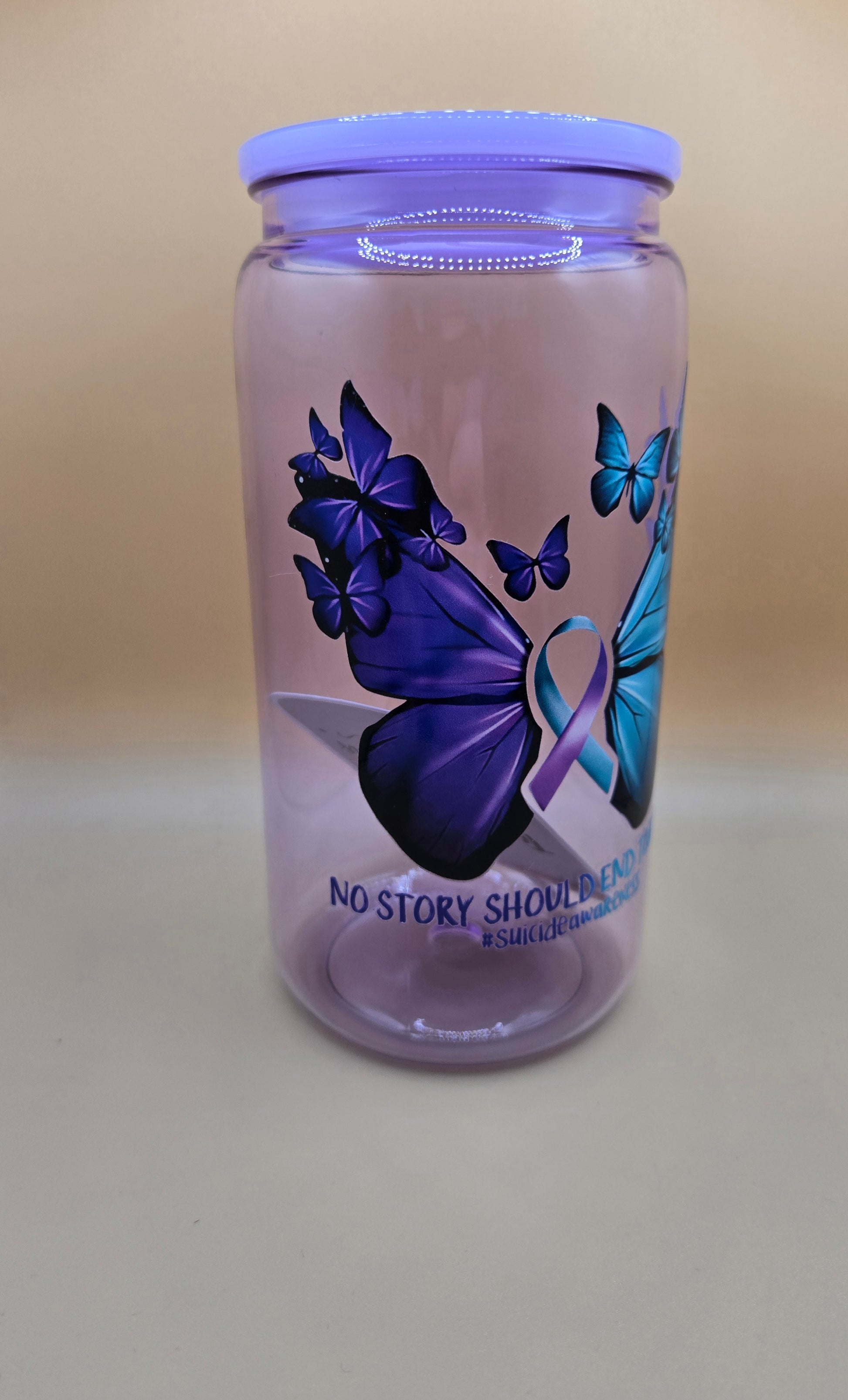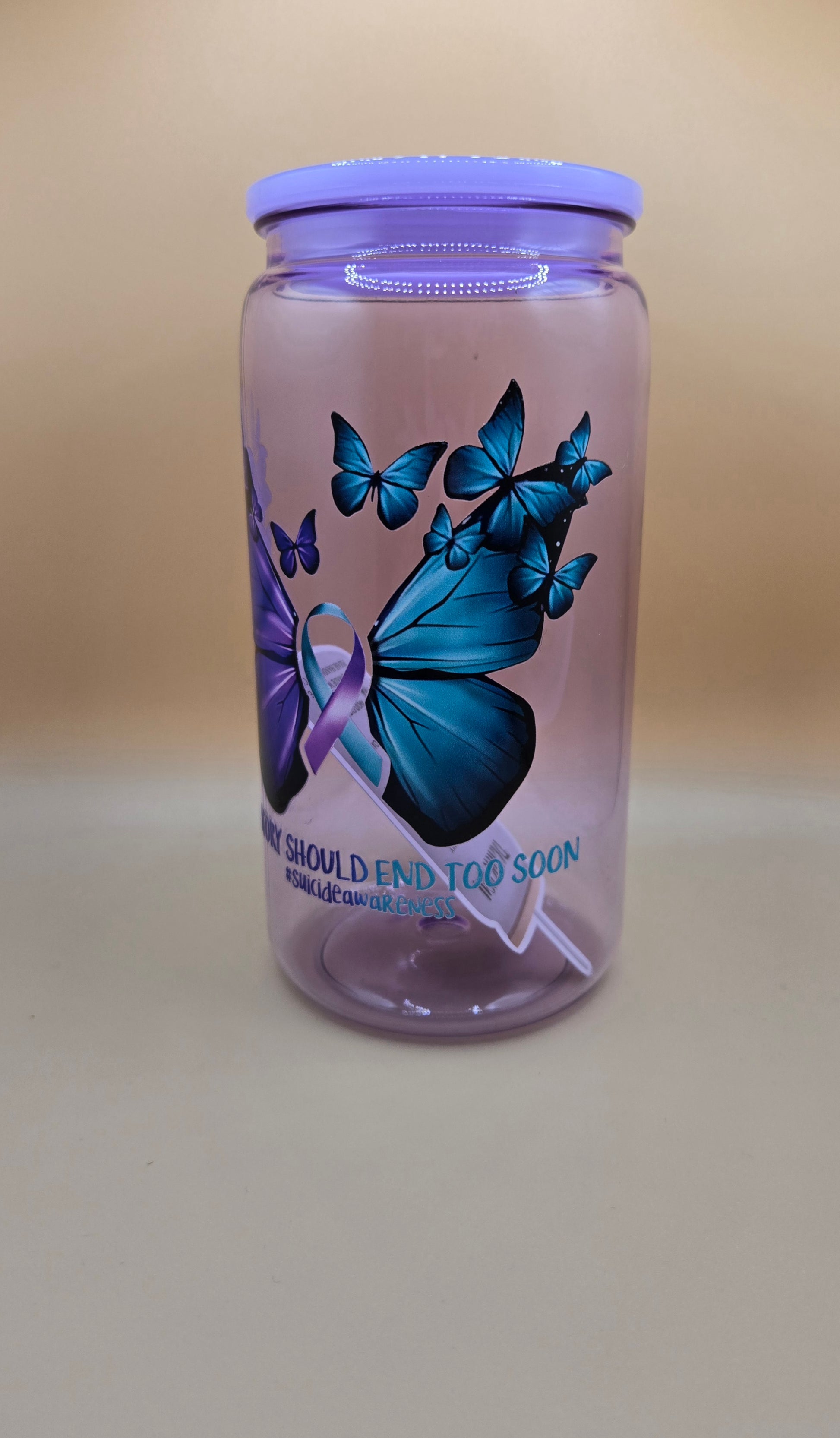 16 oz plastic Suicide Awareness. Comes with plastic Straw.