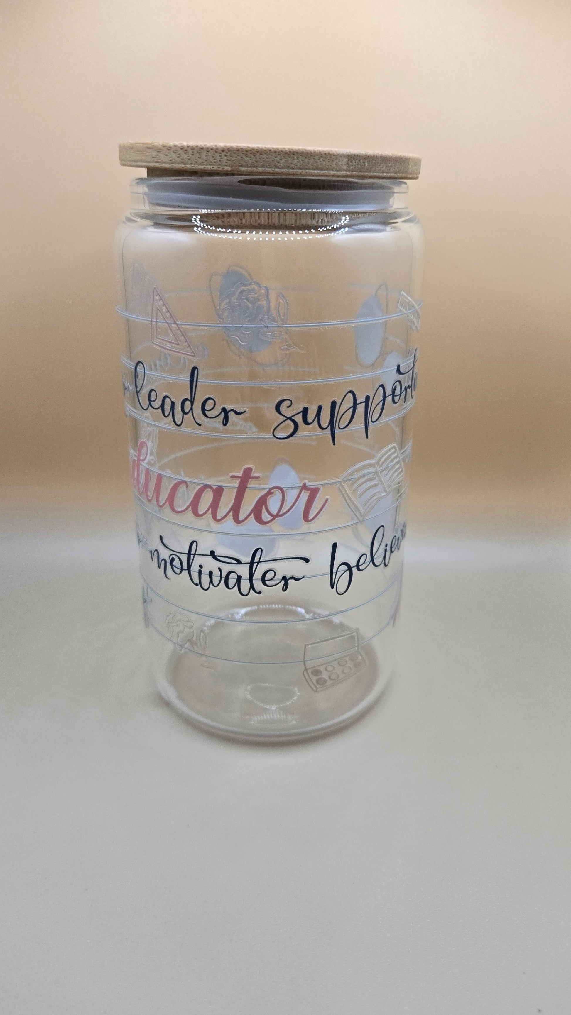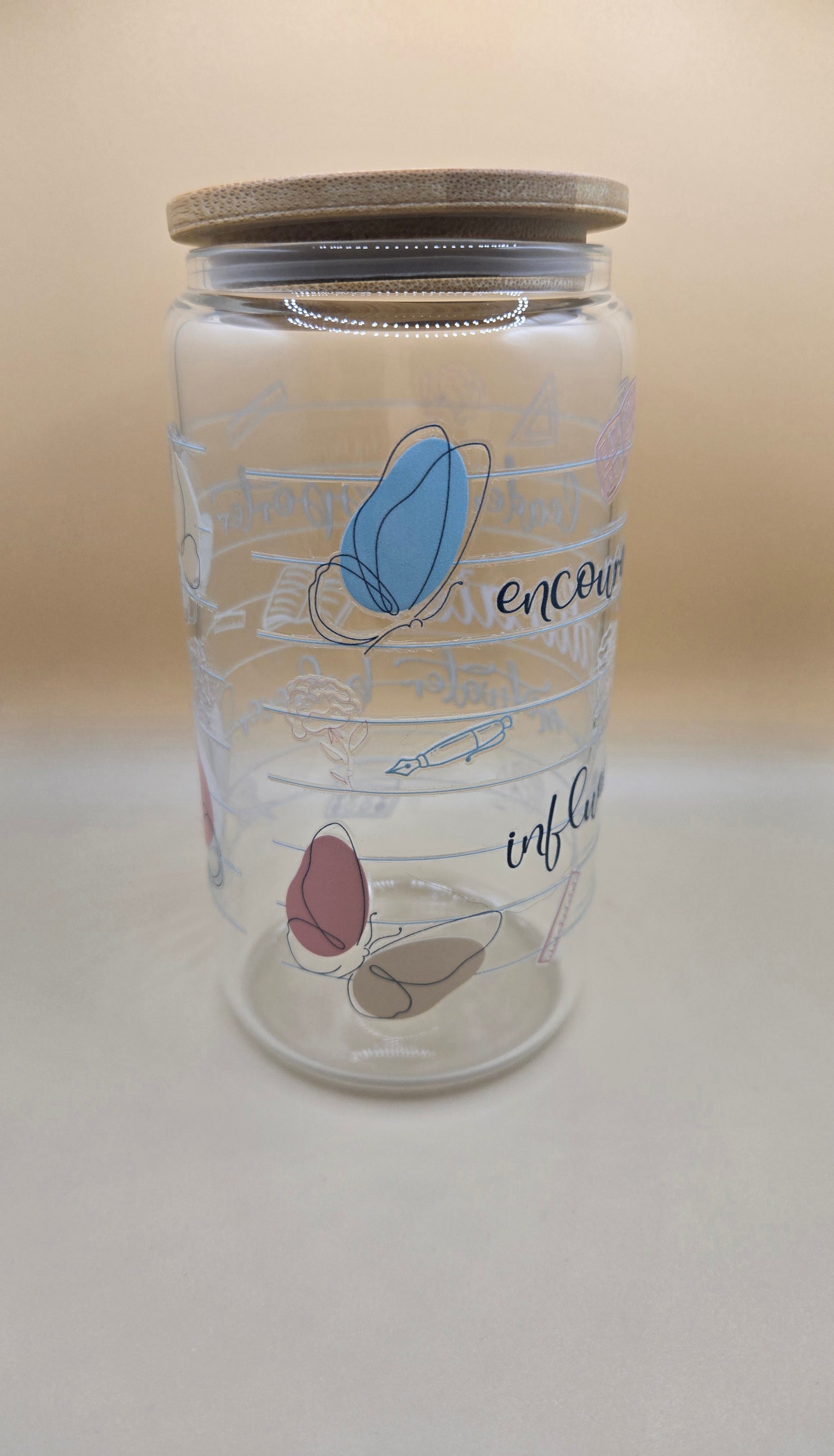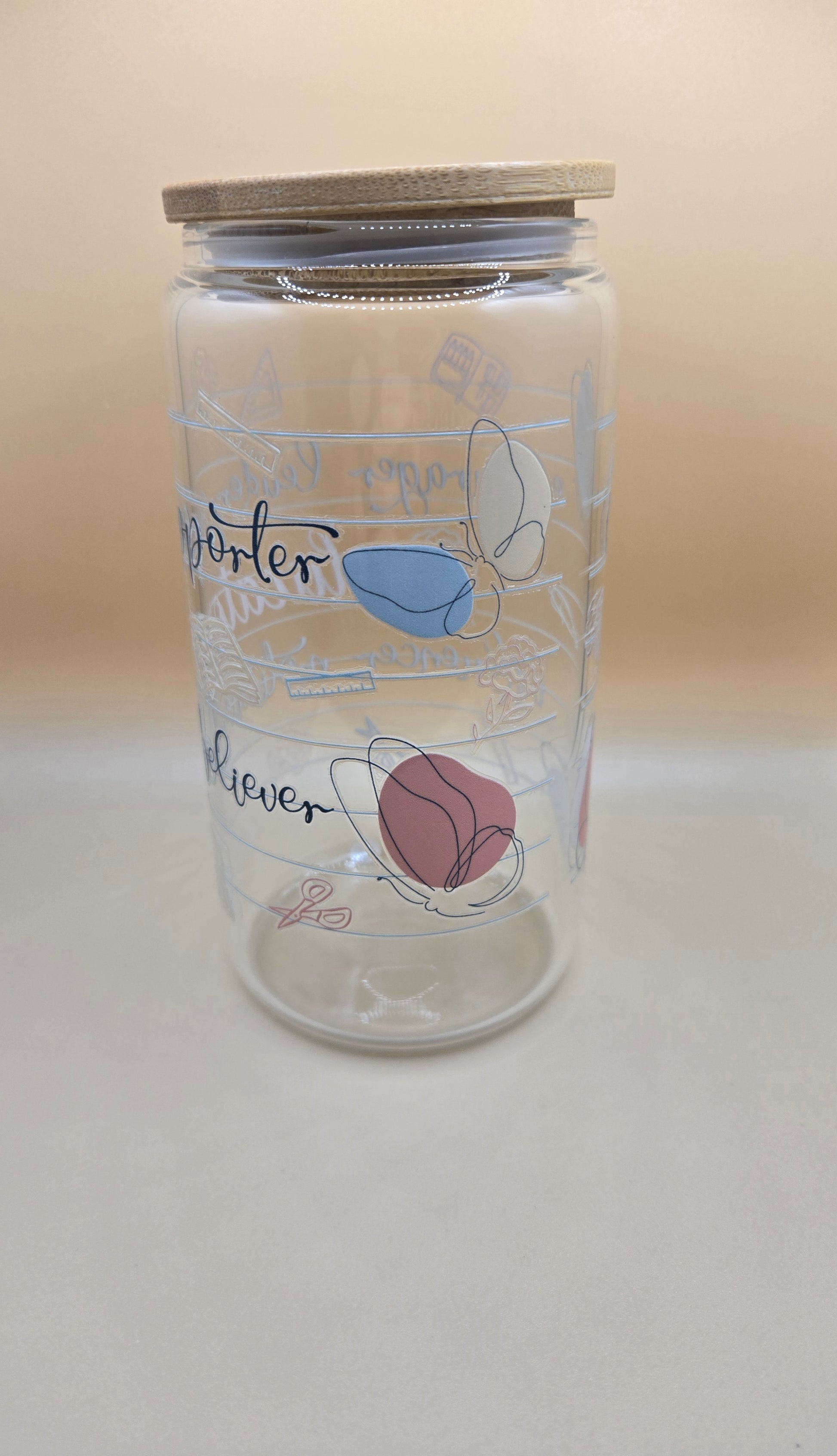 16 oz Glass Cup with Bamboo Lid and Plastic Straw