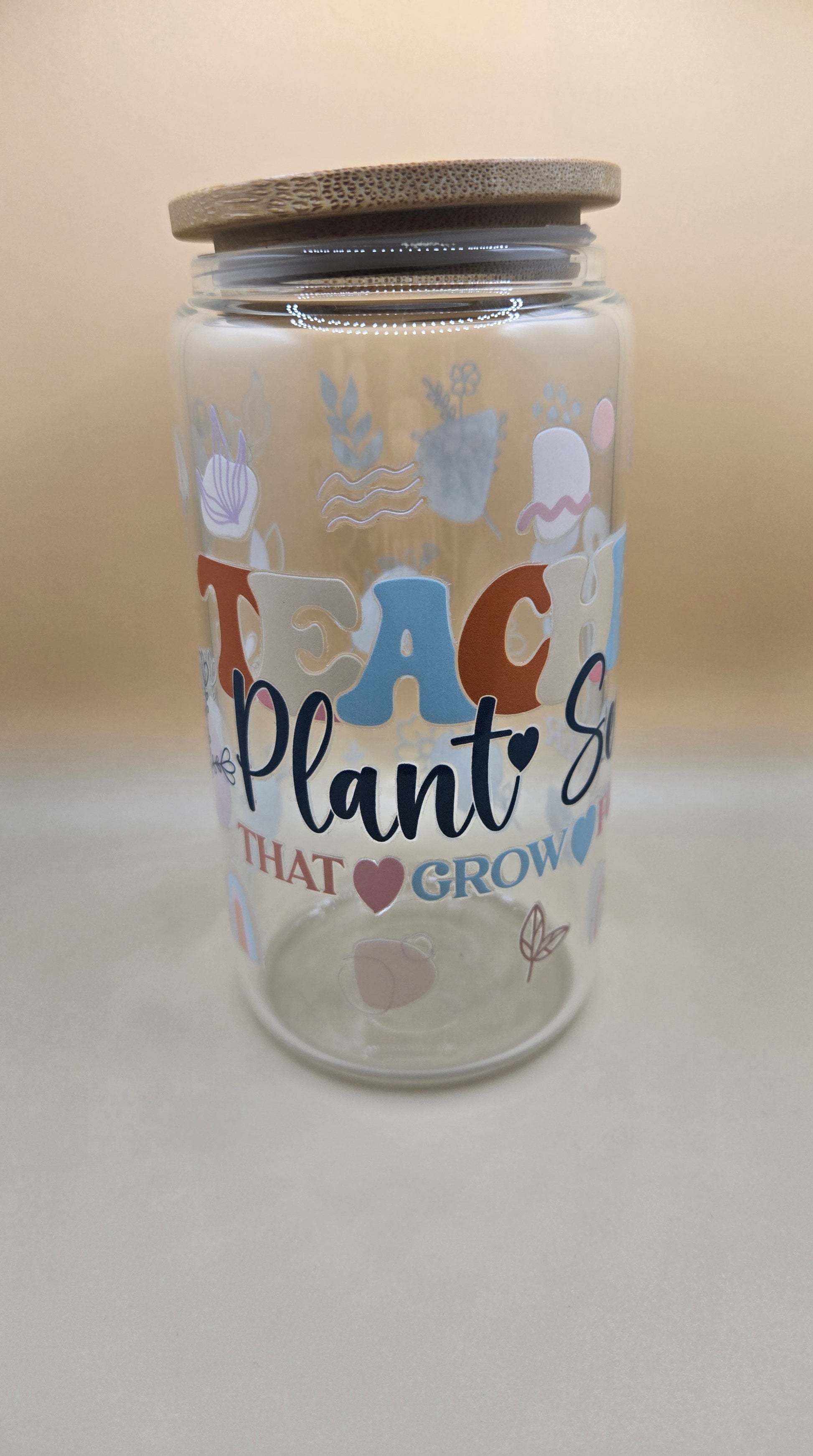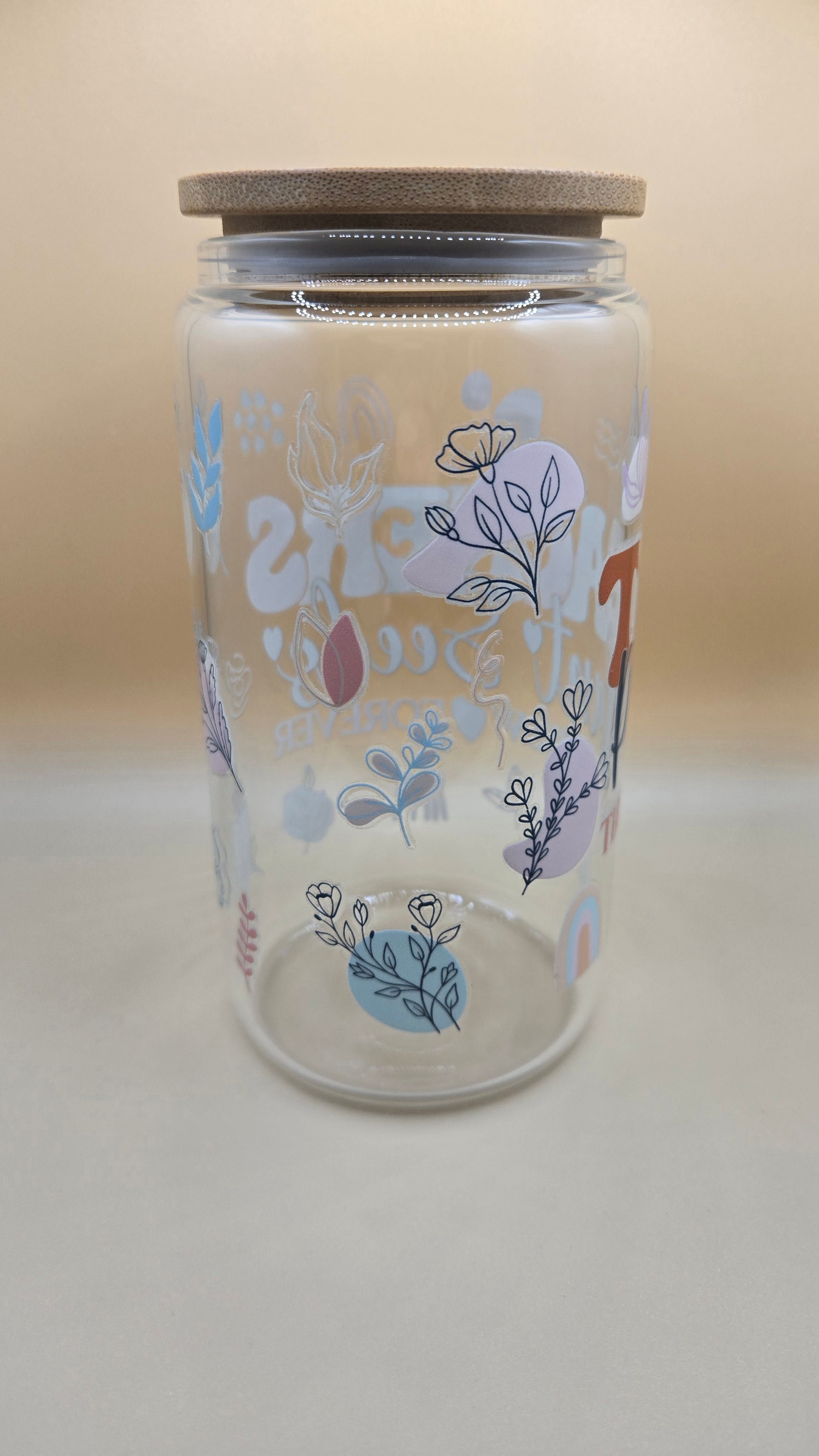 16 oz Glass Cup with Bamboo Lid and Plastic Straw
