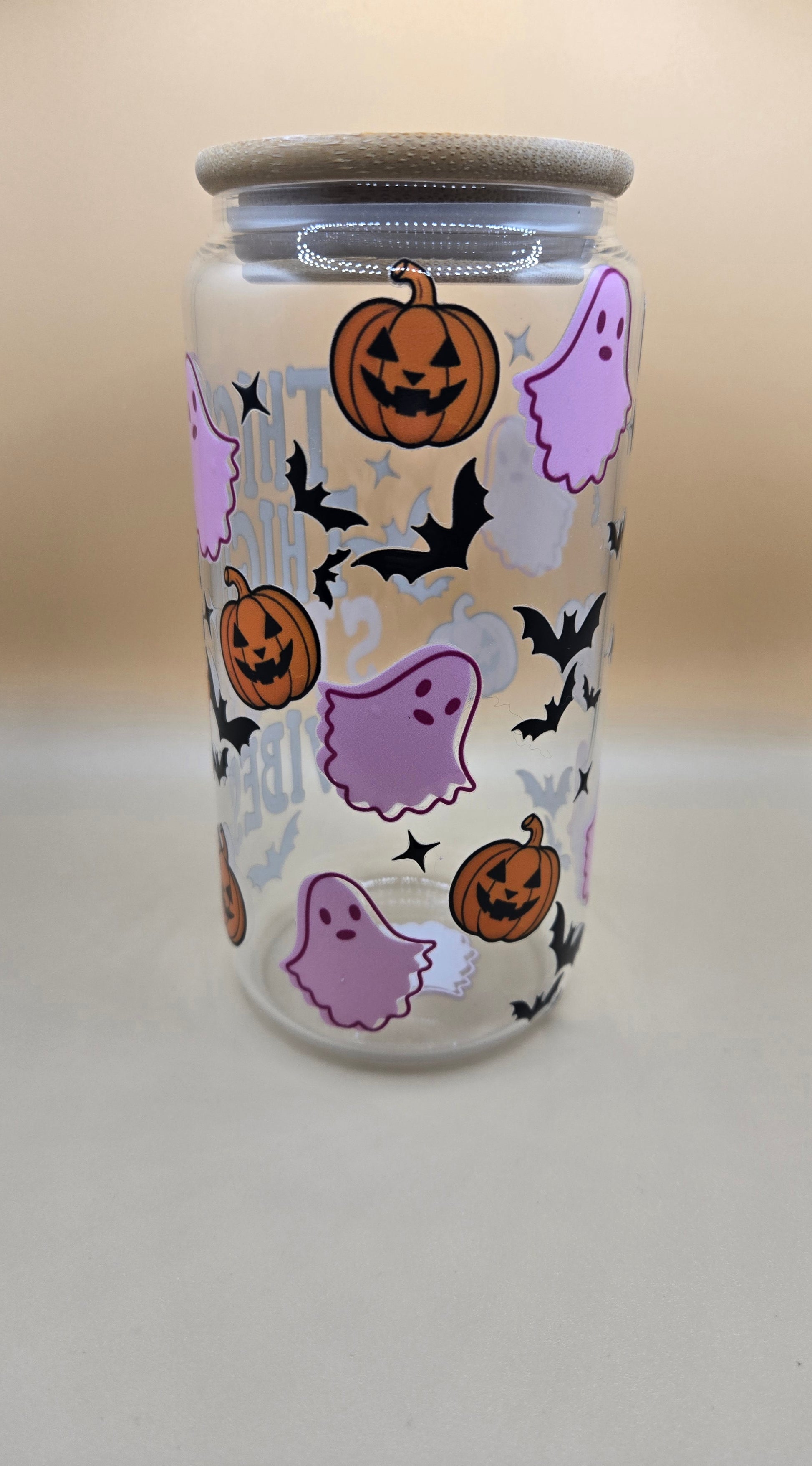 16 oz Glass Cup with Bamboo Lid and Plastic Straw