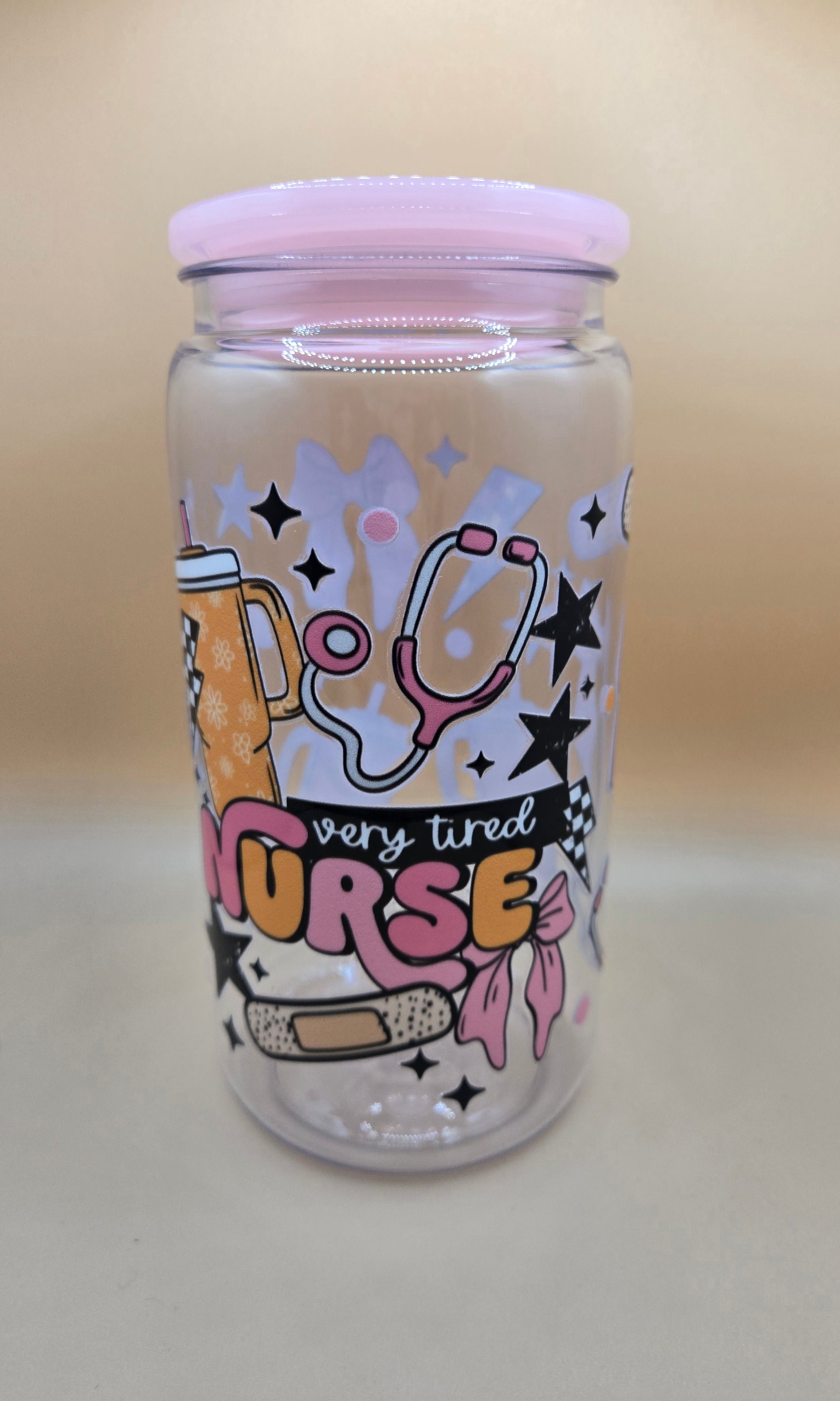 16 oz plastic Very Tired Nurse cup. Comes with plastic Straw.